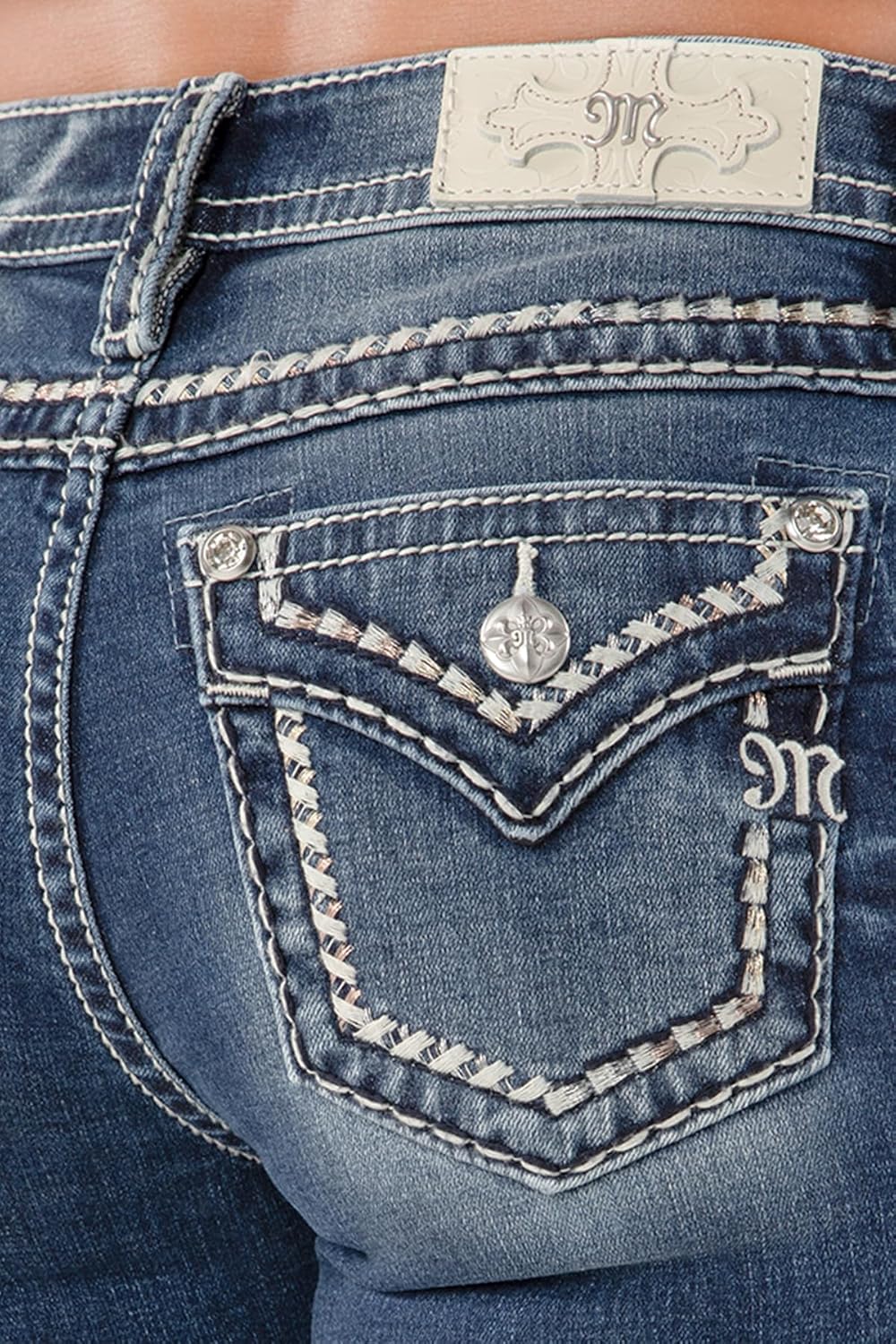 The Miss Me Women's Tri-Color Metallic Saddle Stitch Faux Flap Pockets Mid-Rise Bootcut Jeans are a stunning combination of classic design and eye-catching details. Featuring a rich dark wash and intricate metallic-toned embellishments, these jeans are perfect for adding a touch of sophistication to any outfit. The faux flap back pockets, adorned with elegant embroidery and subtle metallic accents, enhance their luxurious look while maintaining a sleek profile. The bootcut silhouette effortlessly balances timeless style with modern versatility, pairing beautifully with everything from cowboy boots to dressy heels.Crafted from a comfortable stretch denim blend, the Miss Me Women's Tri-Color Metallic Saddle Stitch Faux Flap Pockets Mid-Rise Bootcut Jeans offer a flattering fit and all-day ease. The mid-rise waist provides just the right amount of coverage, making these jeans as functional as they are stylish. With their impeccable attention to detail and ability to complement a wide range of looks, these jeans are perfect for elevating your everyday wardrobe or making a statement on special occasions. Whether you're heading out for a casual day or a night on the town, these jeans ensure you'll stand out in style.