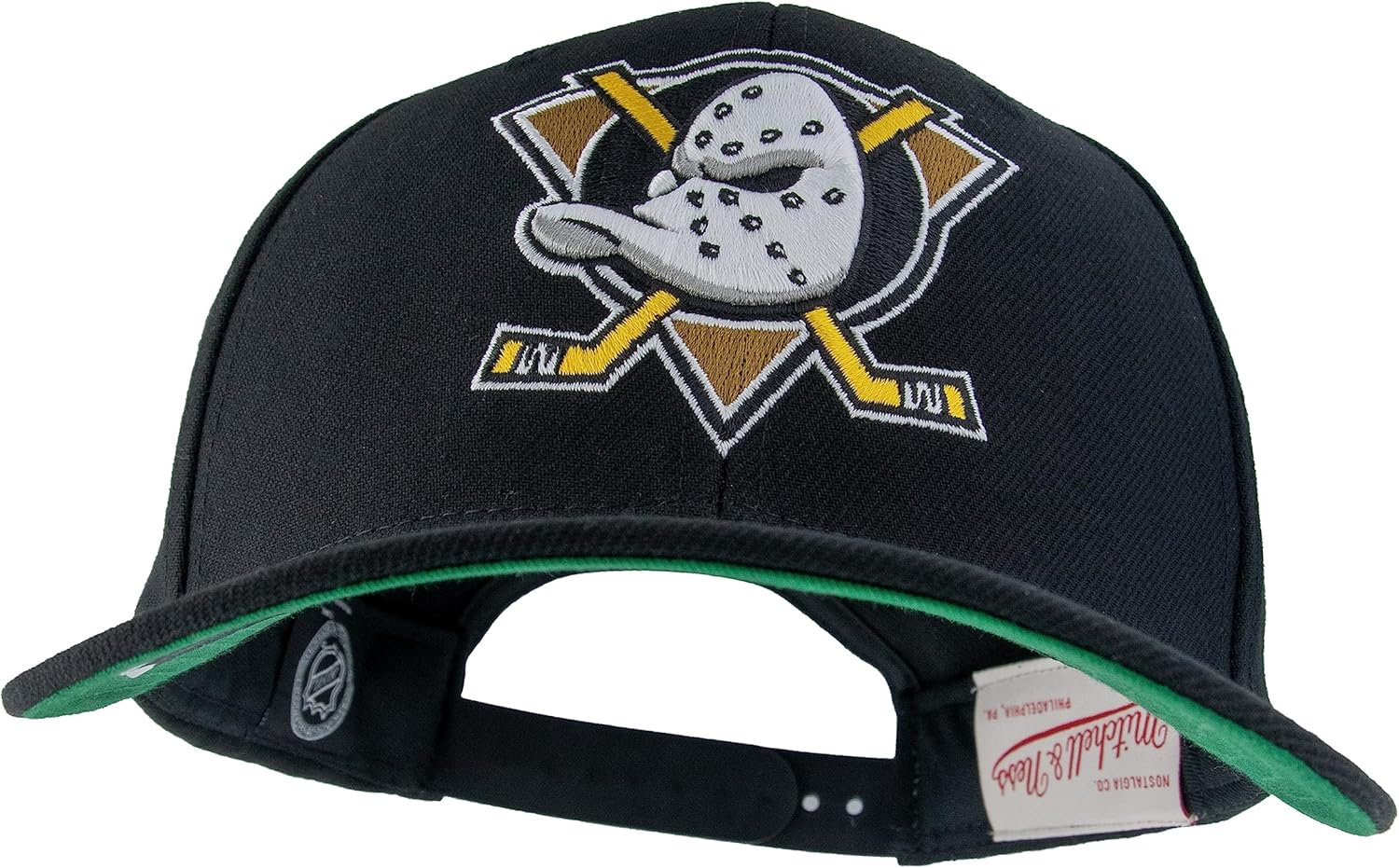 Snapback Caps from the NHL Team Ground collection by Mitchell & Ness A must-have accessory for every Ice Hockey fan - get a piece of nostalgia with the Hardwood Classics collection from Mitchell & Ness. Stylish baseball caps with the team logo on the front and the undervisor is coloured differently in green. Due to the hiqh quality material, the baseball caps are comfortable to wear and can be combined in many different ways. As a stylish accessory, the hats always add that special something to your look - no matter what your plans are. Teams: Selection from different NHL teams License: Officially licensed NHL product by Mitchell & Ness One Size: customizable at the back with a snapback closure Unisex: for men, women, boys and girls More information: Team logo, Mitchell & Ness logo