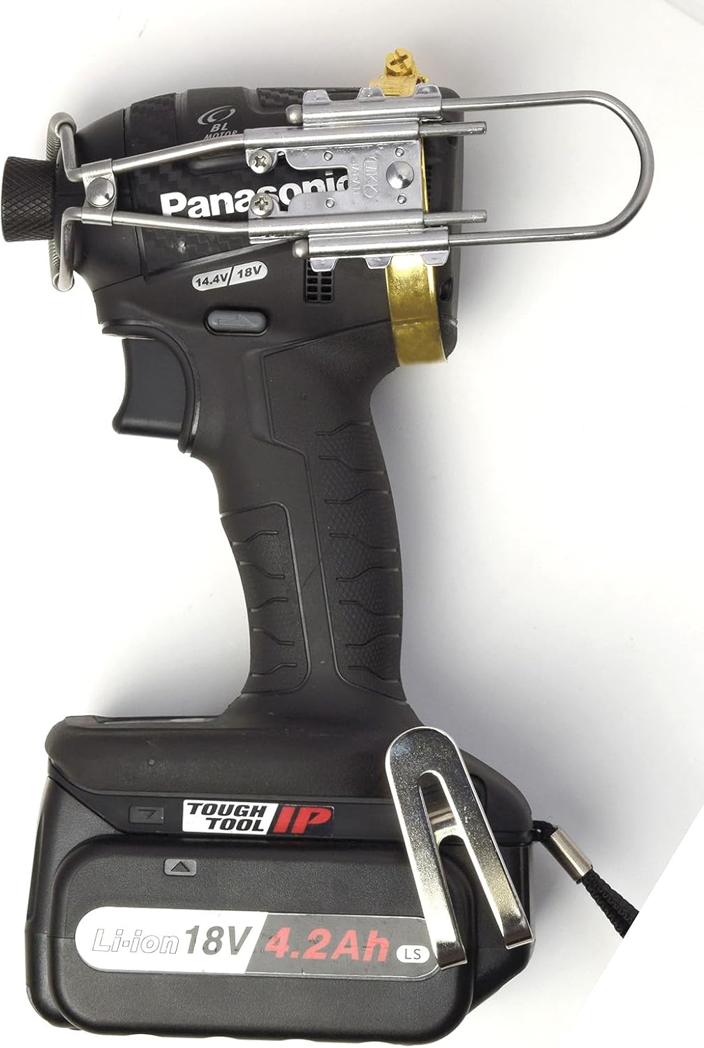 The hook on the top of the main unit so it will not be upside down when carrying it. [Use] Hook for carrying charging impact drivers on the waist Features: Patented Motocoma Original Mechanism Compatible with electric drills with thick main body (can be up to 3.1 inches (80 mm) diameter), mainly compatible with current Panasonic products. The main body and band are made of stainless steel, and the band is color plated as an accent.