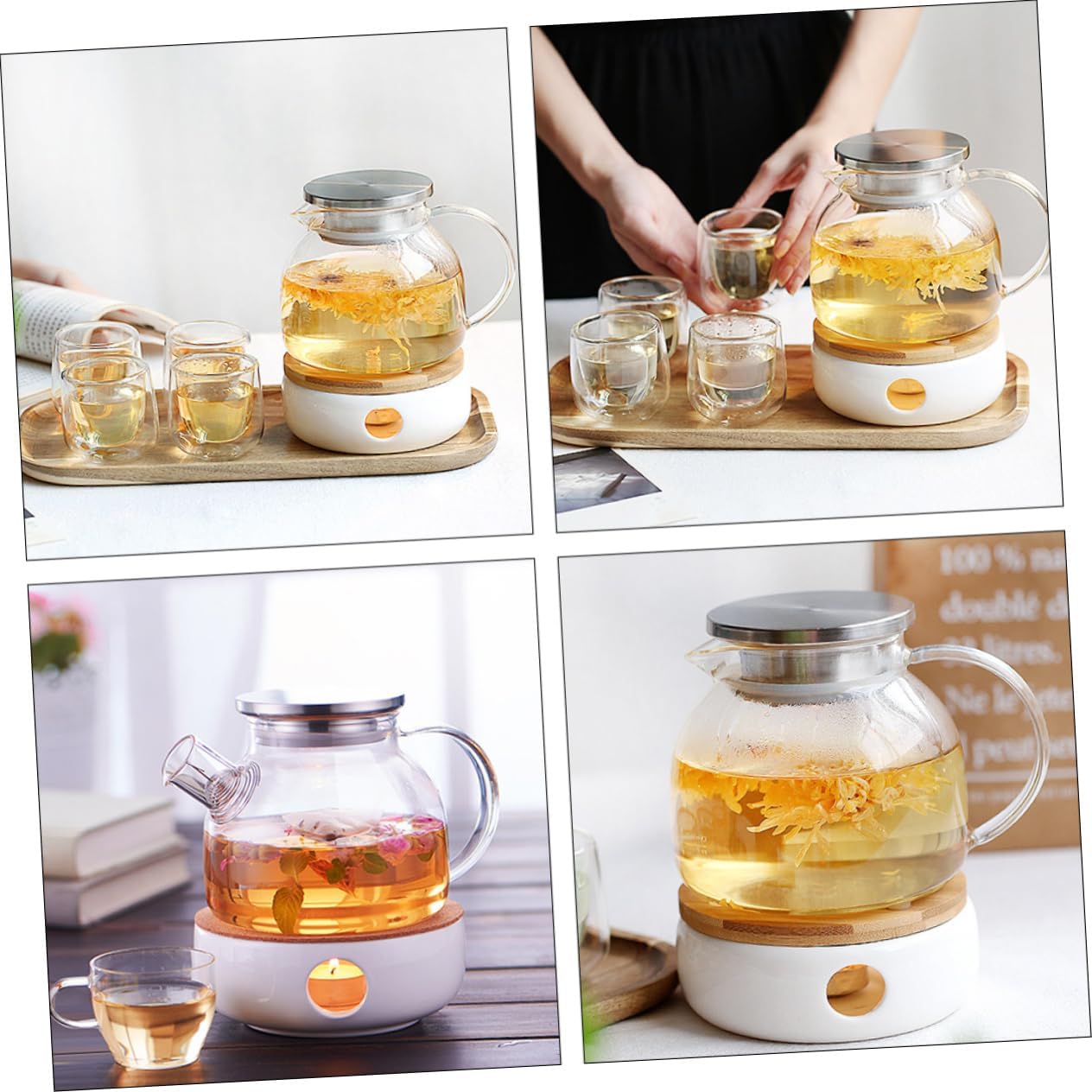 Package Include 1 x Teapot 1 x Teapot Warmer Characteristics -Size (teapot): About 13.50X13.50X6.80cm/ 5.31X5.31X2.67in Kettle. -Material: Glass Glass Teapot. -Color: Assorted color Teapot Warmer Heater. -Size (teapot warmer): About 14.8X14.8X5cm/ 5.8x5.8x2in. - Made of glass material, for use. T Tea Tool - This teapot can stand the temperature difference of -30~15℃ Tea Pot. - The teapot and teapot warmer set can be good present for others, especially for someone who like to drink tea Teapot Heater. - The teapot can be used in refrigerator, microwave oven and dishwasher . Teapot - The ceramic teapot warmer is very convenient and you can heat the tea with candle. Teapot WarmerGoods InformationTeapot The teapot can be used in refrigerator, microwave oven and dishwasher .Teapot Heater The ceramic teapot warmer is very convenient and you can heat the tea with candle.Teapot Warmer Heater Made of glass material, for use.Teapot Warmer This teapot can stand the temperature difference of -30~15℃.Tea Pot This item includes teapot and teapot warmer