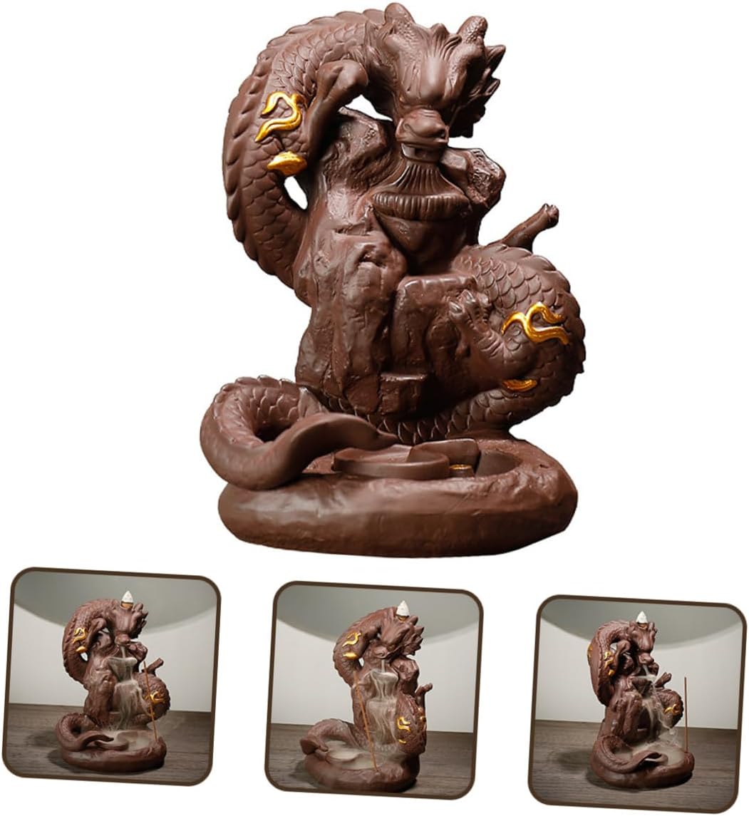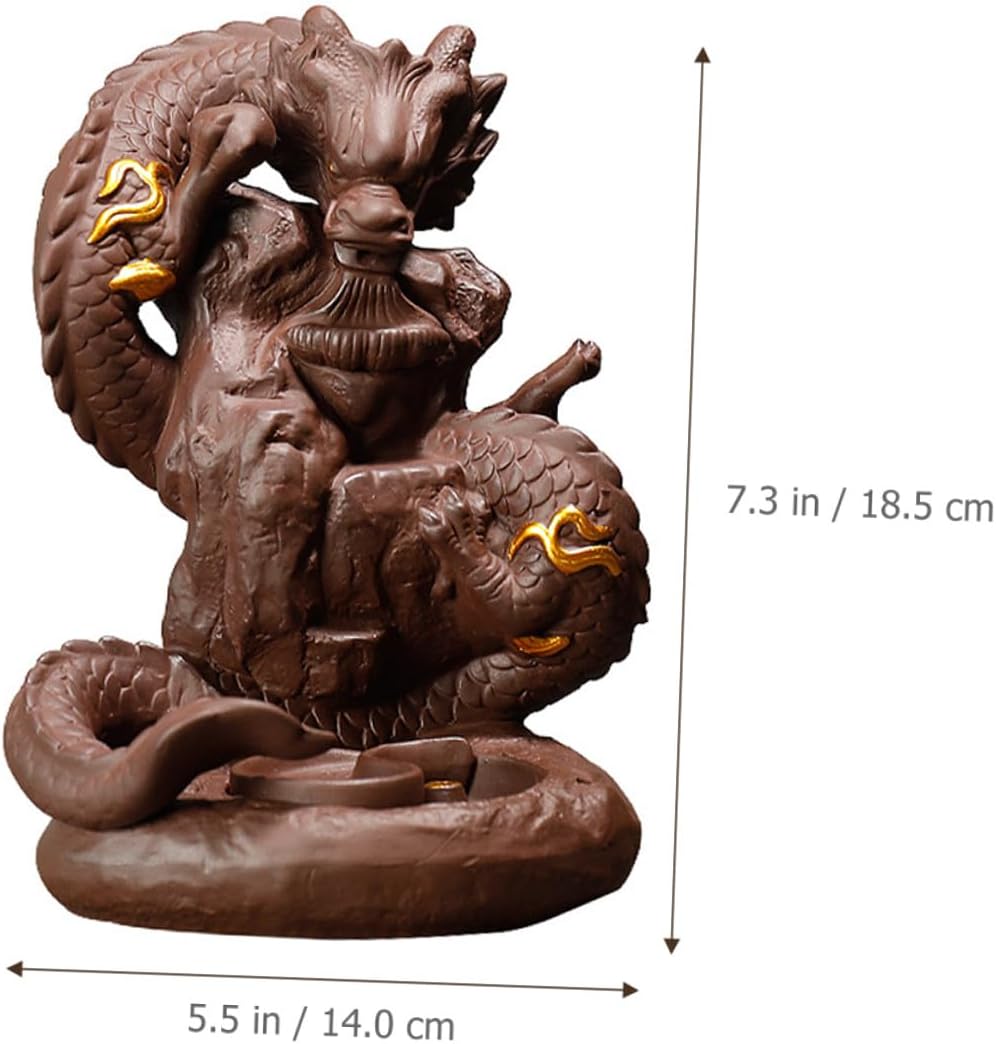 Package List 1 x Backflow Incense Burner Features -Size: About 18.50X14.00X12.00cm/7.27X5.50X4.72in -Color: Brown -Product Info:incense burner -Material: Purple Sands - Can provide a relaxed atmosphere, improving and relieving stress and fatigue Purple Sand Censer. - With fine workmanship, can be a classical furnishing, with meditation and aid-sleeping effect Desktop Backflow Censer. - This incense holder is suitable for all common incense, such US back flow incense cones, incense sticks Incense Stick Holder. - It is very suitable for aromatherapy and fresh fragrance, you can use with confidence Dragon Backflow Incense Burner. - Suitable for many scenes like study, bedroom, sauna room, yoga , etc Dragon Censer Decor.Goods InformationIncense Holder Made of purple sand , designed with creative and shapes.Dragon Statue Decor Great for living room, bedroom, study, office, meditation room, yoga room, hotel, library, etc.Creative Dragon Incense Burner A necessary art work and to someone who loves eastern accessories