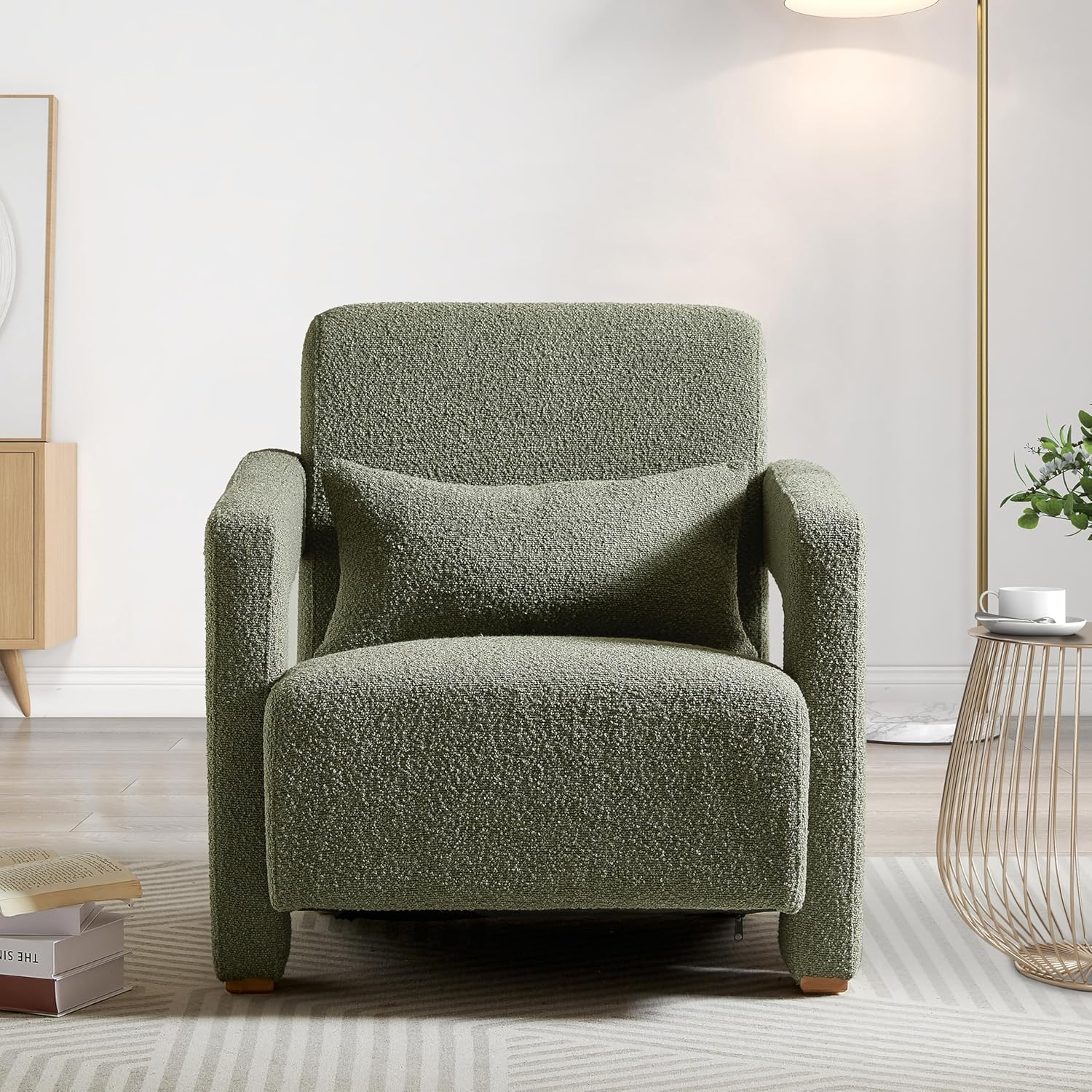 ๐The chair features smooth, right-angle armrests that provide a visually appealing shape while ensuring comfort and support. Designed with ergonomics in mind, the lumbar support gently cradles your lower back, enhancing your comfort during long periods of sitting. More than just a leisure chair, this piece serves as a stunning work of art in your living room, elevating your decor with its unique design. โ โ โ Weights & Dimensions Overall: 30.3''W x 33''D x 30''H Seat Depth: 28'' Seat Hight: 16.1'' โ โ โ Specifications Product Type: Accent chair Fabric Material: Polyester Frame Material: Plywood wooden frame Seat Fill Material: Foam Weight Capacity: 220 lbs/seat Removable Cushions: NO Leg Material: Wood Supplier Intended and Approved Use: Residential Use โ โ โ Notes 1. Manual measurement has been used,there may be some reasonable error. 2. All the pictures are taken by actual samples, slight chromatic aberration may occur due to lighting or display.