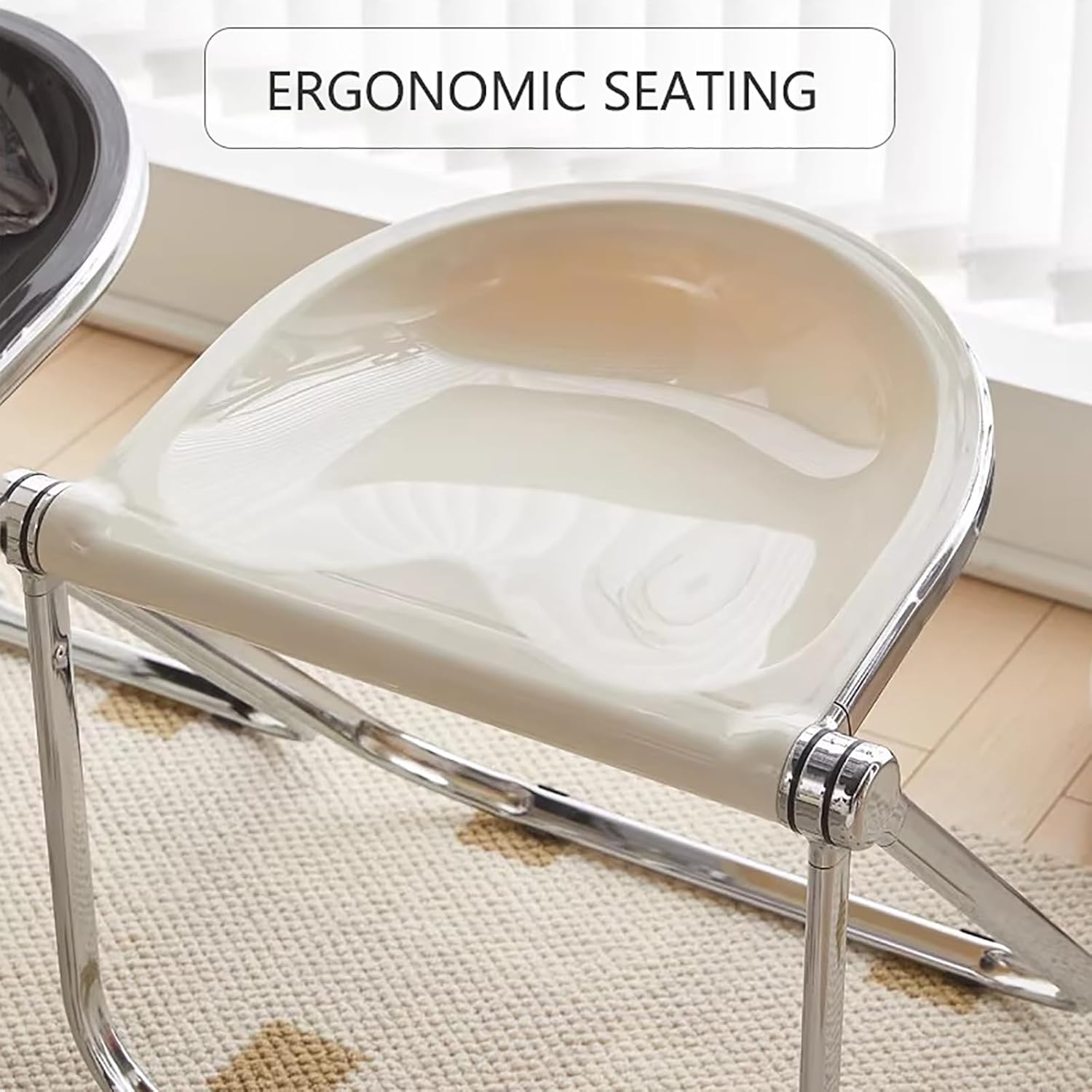 Acrylic Folding Chair Armless Ergonomic Chair Plastic Transparent Foldable Chairs Crystal Clear Dining Chairs Stools for Home, Office, Living Room, Dining Room and OutdoorSpecifications:Name: Folding ChairMaterial: AcrylicColor:Red,Clear,Black,Yellow,Tea Color,Pink,Grey,White,Blue,GreenSize:14.5"D x 21.6"W x 17.7"HPackage includes:1*Modern Acrylic Folding Chair