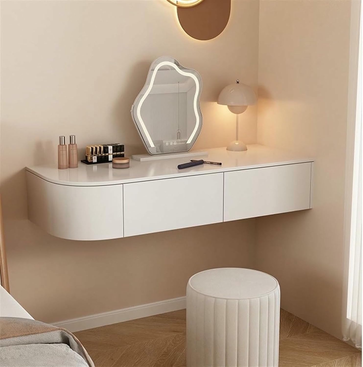 Introducing the suspended vanity, a modern and multifunctional furniture piece designed to enhance both the functionality and aesthetics of your bedroom. This wall-mounted vanity not only maximizes your space but also creates an illusion of openness, making it perfect for smaller rooms where every inch counts. By elevating the design off the floor, it contributes to a clean, minimalist look while allowing for easy cleaning beneath. With ample storage in its spacious drawers, this suspended vanity helps you maintain an organized environment. Say goodbye to clutter as you neatly store your beauty products, accessories, and personal items, ensuring everything is within reach and easy to find. This suspended dressing table is more than just a stylish addition; it's a smart solution for modern living. Whether you're getting ready for a busy day or creating a cozy nook for your evening routine, this vanity adapts to your needs. Its sleek design and practical features make it an essential piece for anyone looking to elevate their home decor while enjoying the benefits of a well-organized space. Embrace a blend of style, functionality, and versatility with this suspended vanity, and transform your bedroom into a serene retreat.
