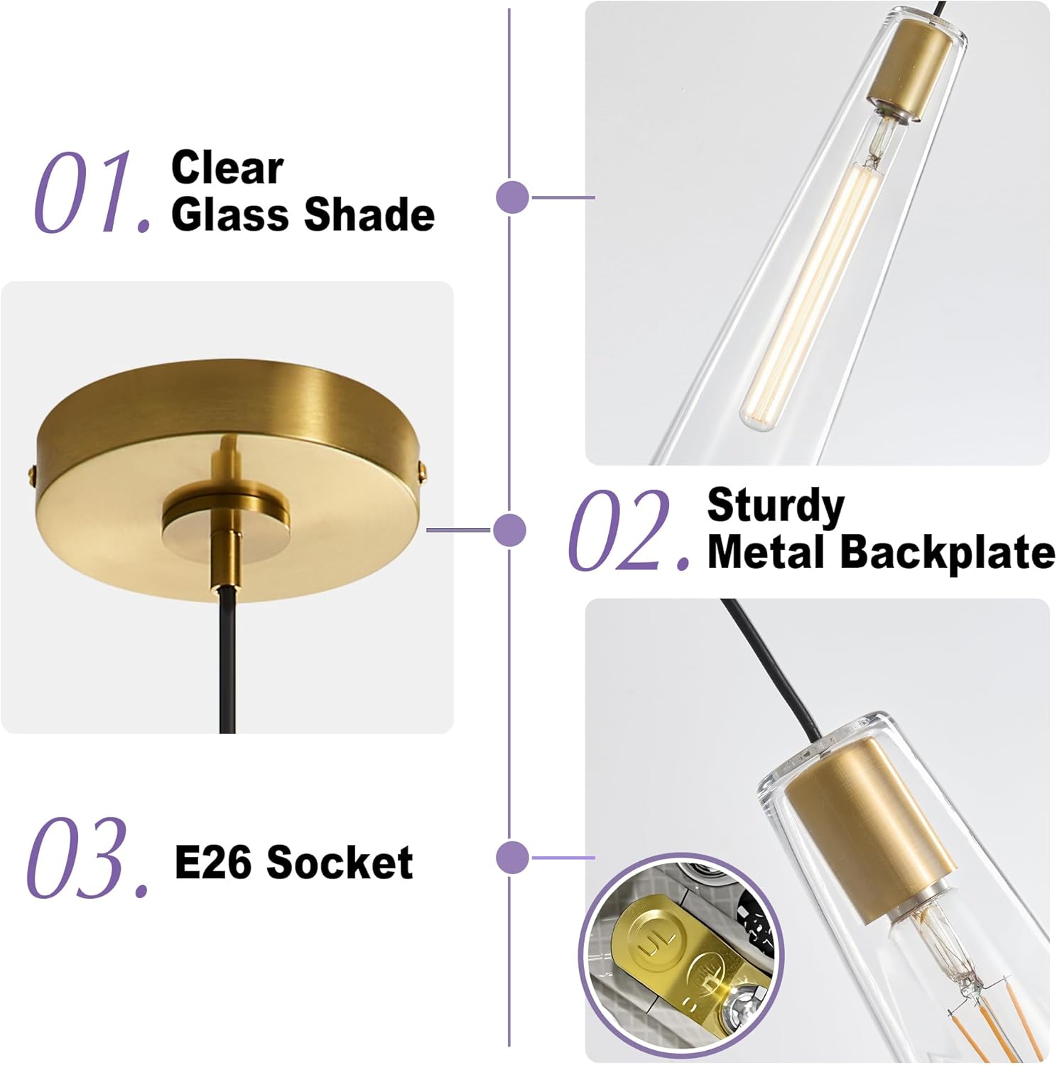Modern Glass Pendant Lights Kitchen Island, Dimmable Pendant Light Fixtures 1 Pack