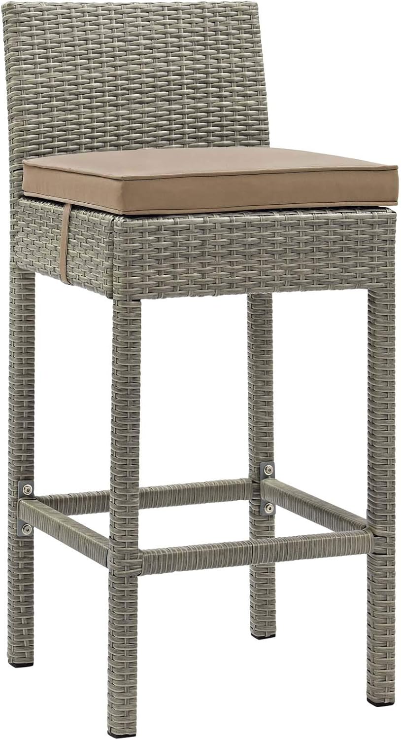 Refresh your alfresco space with the Conduit Outdoor Patio Bar Stool. Bringing transitional style with contemporary modern flair to any outdoor area, Conduit Outdoor Bar Stool features a powder-coated aluminum frame wrapped in synthetic UV-resistant wicker rattan. Foam padded cushion and waterproof cover offer a comfortable patio bar chair while dining or entertaining. All-weather and long lasting, this versatile outdoor bar stool creates a serene setting for your morning tea, sunny lunch, sunset cocktail, and everything in between.