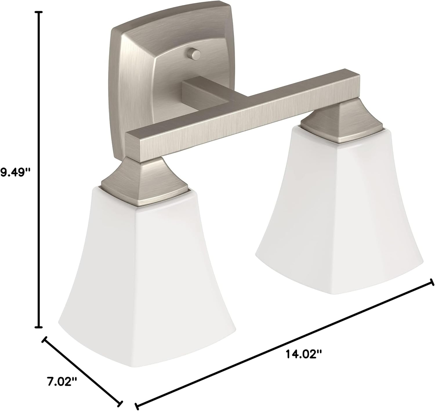 Add elegance and style to your bathroom with Moen Voss Bath Lighting. These flared, rectangular glass globes can be mounted up or down according to your preference. Choose from two, three, or four globes for the perfect amount of light for your room. The light fixture supports up to 100-watt bulbs and is available in chrome, brushed nickel, and oil-rubbed bronze finishes. Quick-connect wiring and glazed sockets makes installation quick and easy.