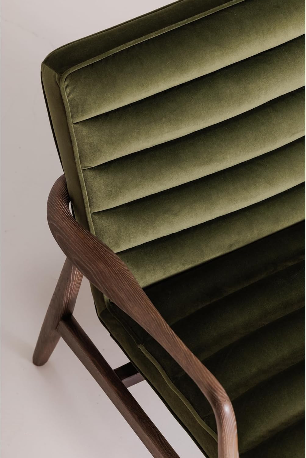 Soft and inviting, the Anderson armchair's rolled, tufted seating and slim side arms make it the perfect spot to enjoy a book or a cocktail. Dark ivy velvet upholstery adds a colorful flair when contrasted against the solid ash wood construction.Features:- Solid ash wood construction- Comfortable high-density foam filling with velvet upholstery- No assembly required