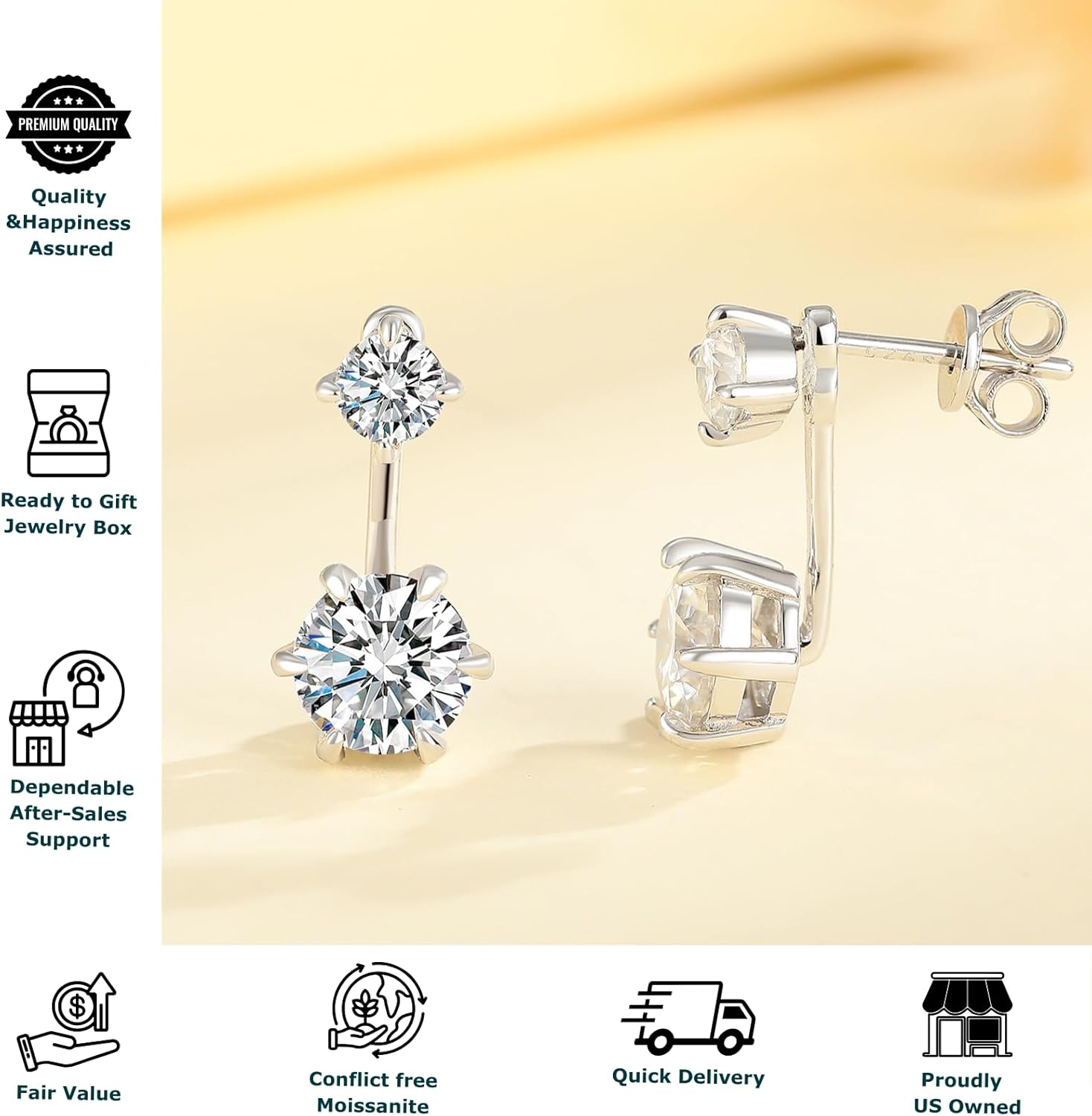 Elevate your everyday style with the Callalove Moissanite Stud Earrings, designed to combine luxurious brilliance, timeless elegance, and daily comfort. These stud earrings are crafted with real 925 sterling silver and hypoallergenic posts, making them ideal for sensitive ears. The unique four-leaf clover design adds a symbolic touch of luck and love—perfect for expressing your care to a loved one or treating yourself. Each earring features a dazzling moissanite stone, hand-cut for exceptional fire and clarity. Unlike traditional cubic zirconia, moissanite offers the shine of diamonds at a fraction of the cost—making it one of the most desirable choices in moissanite jewelry today. Whether you're dressing up for an anniversary, looking for wedding gifts, or need a pair of elegant stud earrings for women or men, this piece delivers both charm and performance. The secure ball screw-back design ensures that your earrings stay put throughout the day, no matter the activity. These moissanite stud earrings suit a variety of fashion needs—from classy date night accessories to stylish everyday silver earrings for men and women. Compatible with keywords such as: earrings for women, stud earrings, moissanite earrings, silver earrings studs, 925 sterling silver earrings, earrings for men, and more, this piece is a versatile must-have in any jewelry collection. Choose Callalove for timeless elegance, reliable comfort, and modern sparkle—because you deserve jewelry that reflects your brilliance.