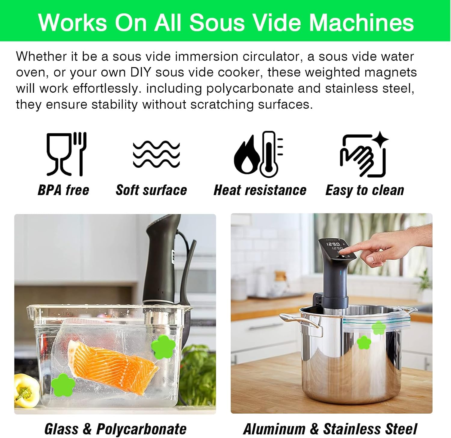 All-in-One Sous Vide Cooking Kit Experience seamless sous vide cooking with MOMODA’s upgraded bundle-engineered for convenience, precision, and delicious results. Package Includes 20 reusable vacuum seal bags (8.6"x8.2") 20 reusable vacuum seal bags (10.2"x13.3") 4 cooking clips for secure placement 4 zipper-sealing clips for tight closure 1 upgraded handheld electric vacuum pump 12 silicone-coated magnetic clips for consistent water submersion Efficient Sealing with Electric Pump The upgraded handheld vacuum pump provides fast, one-touch air removal and is USB rechargeable. Compact and portable, it's perfect for kitchens of any size. Designed to simplify sous vide preparation and extend food shelf life. Reusable, BPA-Free Vacuum Bags Made from durable, BPA-free materials, the included vacuum seal bags are safe for food, heat-resistant, and easy to clean. With two practical sizes, you can seal and store everything from portioned meals to large protein cuts. Sous Vide Magnets for Even Cooking The 12 silicone-coated magnets keep bags fully submerged in water, ensuring uniform cooking. Each magnet features a plate-type design with 4.9mm thickness and a surface magnetic field intensity below 1.5W/cm²—safe for daily use and compatible with most sous vide containers. Safe and Reliable Accessories All materials are heat-resistant and food-safe, ideal for sous vide and long-term food storage. The magnetic clips and cooking clips are compact for easy storage and reliable during extended cooking sessions. Usage Tips Keep vacuum bags away from children to avoid suffocation risks. Suitable for dry and lightly moist foods; clean the valve thoroughly after use. Store in a cool, dry, and well-ventilated area. Wash bags with warm water and soap by hand; avoid dishwashers. Always close zipper seals firmly and avoid folding to prevent damage.