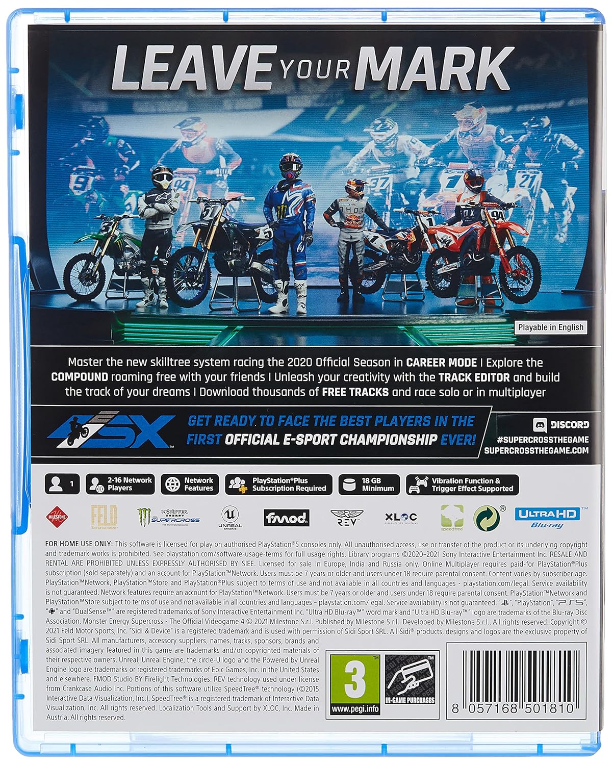 Product Description The only official ama Super cross Championship videogame is back, more official than ever: Monster Energy Super cross - The OFFICIAL videogame 4! The exciting Monster ama Super cross world is back, with more official content than ever! More than 100 official riders will be featured, the biggest number of riders from the 450SX and 250SX East and West ever in the Super cross franchise. The 2020 season has been particular for many reasons, and Super cross 4 will have all the 11 stadiums and 17 tracks of this Season, including the 7 salt lake city variants. And is not over: the most requested rider is now one of us: Ken roczen will join the Super cross 4 roster! A totally revised career mode will give you the opportunity to start your path to the glory as a "futures", the very beginning of your career. The performance of each rider are affected by his skills: during his career the player have to increase those skills based on a deep skill tree to focus the development on what he likes to do best. Points are gained not only by racing, but also joining special events, completing trainings and fulfilling the journal: a series of special objectives to really show who's the best! Track Editor is back! More modules, created from the official 2020 Official tracks, and a more user friendly experience for one of the most appreciated Super cross feature. Inspired by the beautiful landscapes of Maine islands, the new compound is a Place to explore in solo or together with other 3 friends or race against each other in the different tracks on this island. Face new challenges and find all the collectibles! Customize your bike and your rider in a tons of different ways: more than 100 brands for cosmetic and performance customizations!. Set Contains: 1 Game Disc