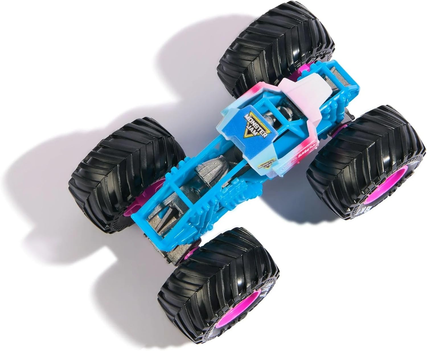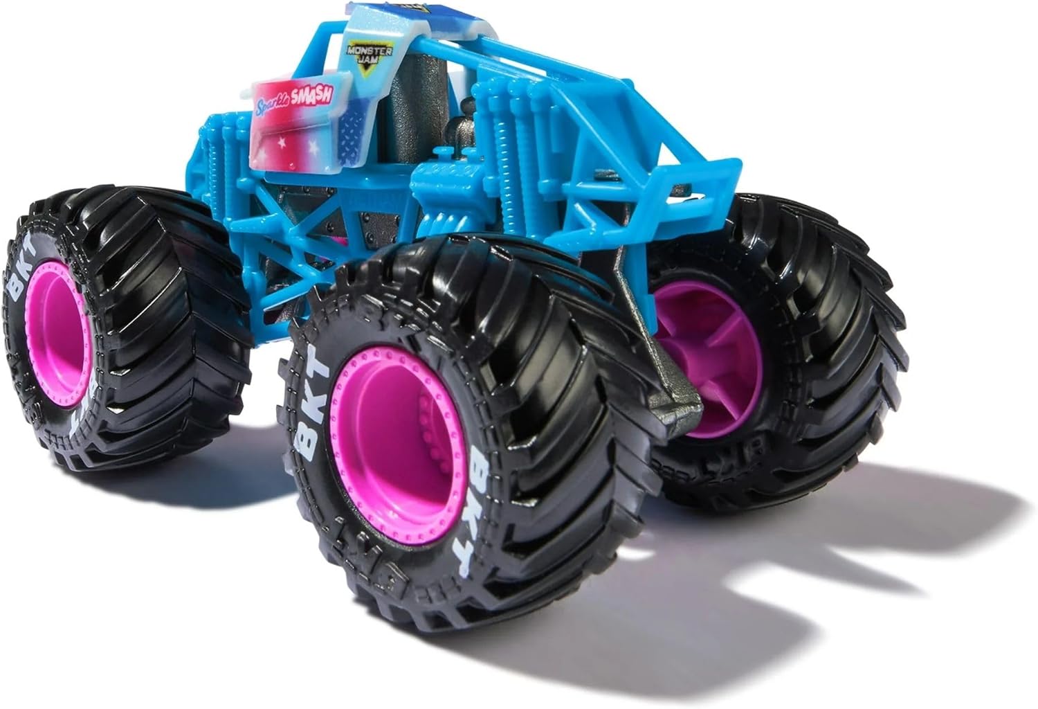 Monster Jam 2025 Official 1:64 Scale Diecast Truck Series 42 Training Trucks Series Sparkle Smash. Introducing the all-new, official 1:64 scale die-cast Monster Jam monster truck! This lean, mean, Monster Jam machine features awesome graphics and details. With official BKT Tires, stylized rims, and an authentic chassis, this monster truck embodies the style and swagger of its real-life counterpart! Pull off epic stunts and jumps, just like you’ve seen in the live shows with your 1:64 scale toy truck. This die-cast Monster Jam truck is just like the real thing – only fun size! And now, with even more trucks to collect, including rare training trucks (toys each sold separately), unleash the epic Monster Jam action again and again! Plus, scan the QR code on the packaging to view the collector poster and keep track of your Monster Jam collection. Monster Jam monster truck toys are the perfect gifts for kids ages 3 and up. Bring home your favorite Monster Jam monster trucks and start building your collection today! Includes: 1 Monster Jam 1:64 Scale Monster Truck.