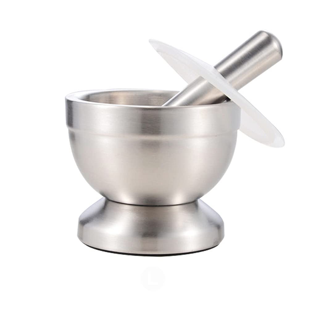 : stainless steel grinderType: UsukiColor: as shownQuantity: 1 set (distribution hammer)Material: stainless steelSmall size: 9.5*9.5*8.2cm, 1170gLarge size: 11.4*11.4*9.2cm, 830gPackage includes: 1* stainless steel grinder.1. Made of food grade 304 stainless steel, corrosion-resistant, clean and easy to clean.2. -piece seamless welding, surface sanding treatment, seamless welding in the bowl without hiding powder3. Powerful solid ramming, with a larger area of -shaped surface, home bar, faster use4. Silent anti-skid pad at the bottom, silent EVA pad to prevent sliding during grinding, impact will not cause damage to the desktopNotes:1. Please allowed 1-3mm differences due to manual measurement, thank you for your understanding!2. Due to the difference between different monitors, please understand that the picture may not reflect the actual color of the item.Compact design takes up little space in your kitchen, and makes a great gift for new cooks to master chefs