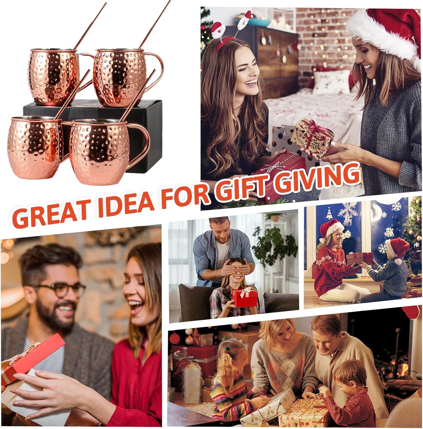 [Perfect Gift] Ideal for any occasion, impress and delight your loved ones. [Comfortable Design] Insulated handle for a cool, secure grip while sipping. [Exceptional Thermal Conductivity] Keeps hot drinks warm and cold drinks chilled for longer periods. [Ample Capacity] With an 18-ounce size, enjoy your drink without spills. [Premium Quality] Food-safe stainless steel with lustrous copper finish enhances beverage taste. Spec: Features: 530ml/18oz Capacity: With a generous 18-ounce size, our moscow mule cup provides ample space to hold your drink and accommodate ice cubes, ensuring you can enjoy your beverage without the worry of spills. Copper Plated: Crafted from food-safe stainless steel and coated with a lustrous copper finish, our moscow mule mugs offer a premium and safe drinking experience, and enhances the taste of your beverages. Perfect Drinking Experience: The copper-plated exterior of these copper mugs provides exceptional thermal conductivity, allowing your hot beverages to stay warm for longer periods and your cold drinks to remain refreshingly chilled. These mugs are not only great for enjoying your morning coffee or tea, but they can also be used for serving cocktails, hot chocolate, or even as stylish desk organizers. Insulated Handle Design: Designed with your comfort in mind, these copper cups feature an insulated handle that stays cool to the touch, providing a comfortable and secure grip while sipping your favorite beverage. Best Gifts Set: This moscow mule cups set of 4 is the perfect any occasion. Whether it's a birthday, anniversary, or housewarming party, these mugs are sure to impress and delight your loved ones. Specification: Product material: 304 stainless steel Product size: 10 x 8.8 x 5.5cm / 3.94 x 3.46 x 2.16in Straw size: 21.5 x 0.6cm / 8.46 x 0.23in Product color: Copper Capacity: 530ml / 18oz Quantity: 4pcs Packing List: 4 x Mule Mugs 4 x