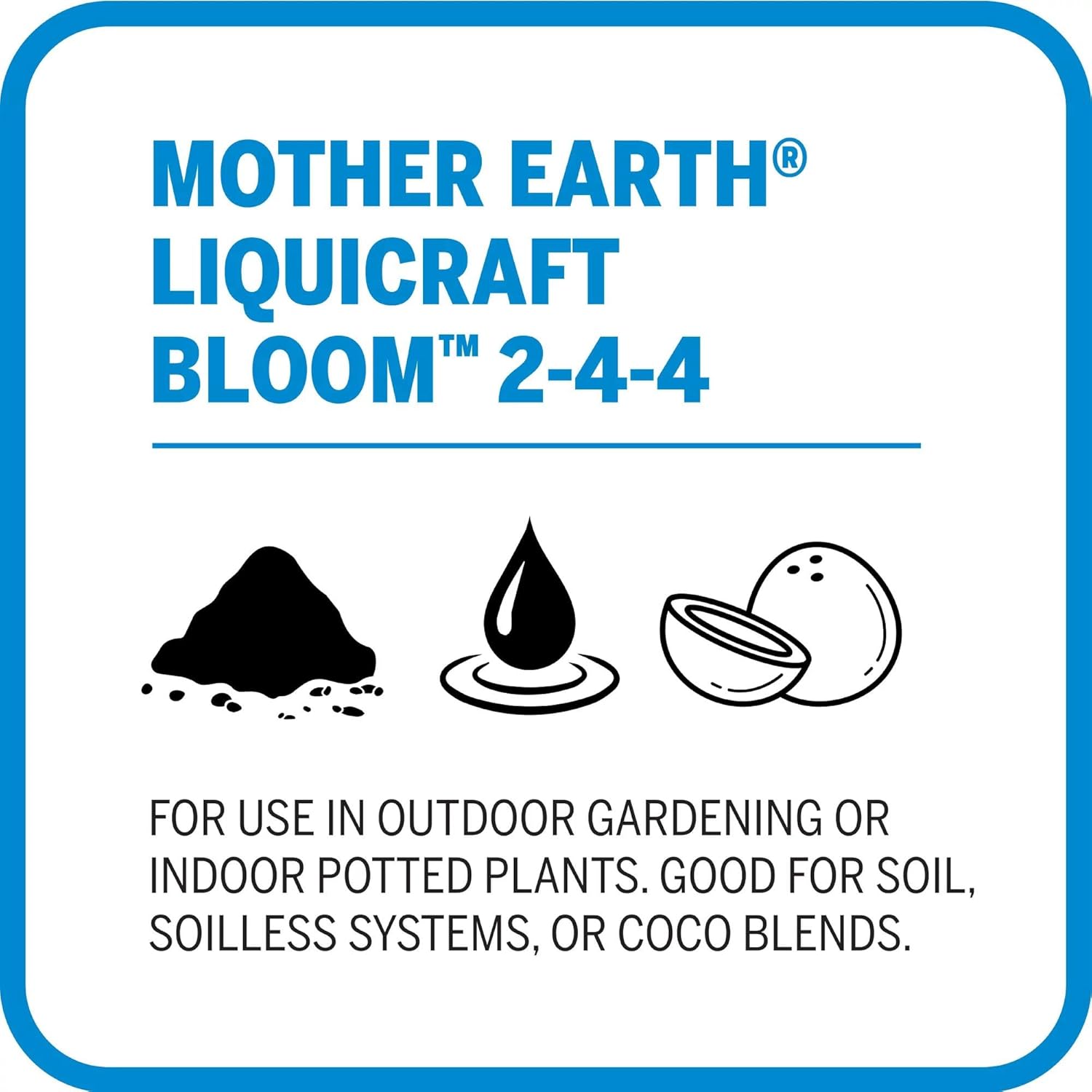 The Mother Earth Soil Fertilizer Bundle is a dual fertilizer system of Mother Earth LiquiCraft Grow 4-3-3 and Mother Earth LiquiCraft Bloom 2-4-4 nourishes your plants so annual flowers, shrubs, herbs, roses, and vegetables like tomatoes thrive. Mother Earth LiquiCraft Grow provides nutrients to encourage growth throughout the crucial vegetative growth stage while Mother Earth LiquiCraft Bloom provides critical nutrient support during plants’ fruit and flower development. The two fertilizers include most primary and secondary nutrients your plants need to fulfill their full potential. Use Mother Earth LiquiCraft Grow 4-3-3 during the vegetative stage and Mother Earth LiquiCraft Bloom 2-4-4 during the blooming, fruiting or flowering stage, applying each as directed and diluting 2-4 teaspoons per gallon of water every watering. Great for any plant in soil, soilless mixes and coco blends in outdoor gardening beds or indoor potted plants; bundle includes Mother Earth LiquiCraft Grow 4-3-3, 1 qt and Mother Earth LiquiCraft Bloom 2-4-4 1 qt.