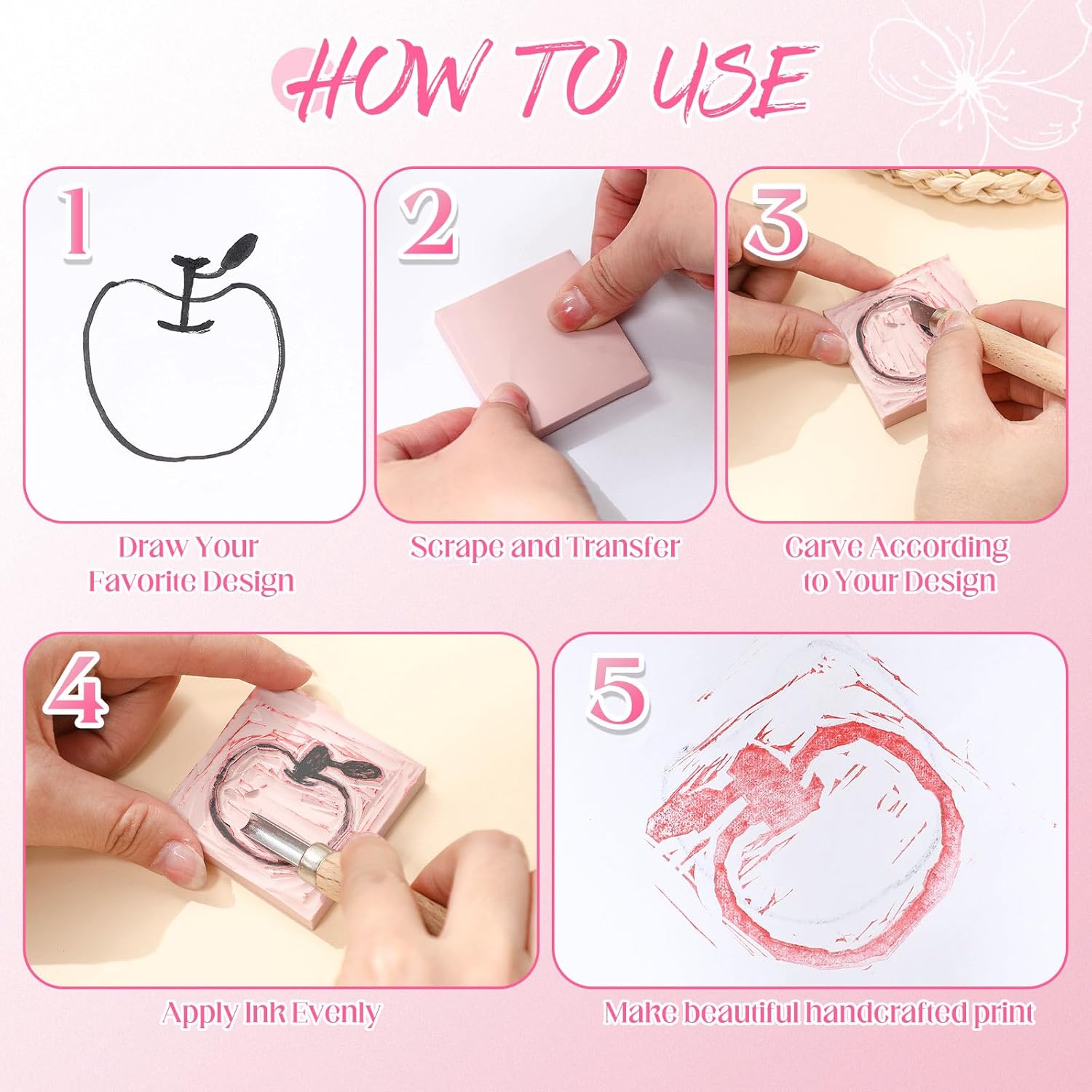 Features: Indulge in the soft and aesthetically pleasing pink color of our soft carving block. The elegant color not only adds vibrancy to your workspace, but also makes intricate carvings stand out visually, making your creative process more enjoyable. These printmaking rubber blocks are very suitable as gift for your family members, relatives, friends, colleagues, and those who like craft items, enhancing your interpersonal relationship. Specifications: Material: rubber Color: pink Size: about 4 x 6 x 0.24 inches/ 10 x 15 x 0.6 cm, 6 x 8 x 0.24 inches/ 15 x 20 x 0.6 cm, 8 x 10 x 0.24 inches/ 20.5 x 25.5 x 0.6 cm, 2 x 2 x 0.39 inches/ 5 x 5 x 1 cm Package includes: 8 x Pink rubber carving blocks Notes: Manual measurement, please allow slight errors on size. The color may exist a slight difference due to different screen displays