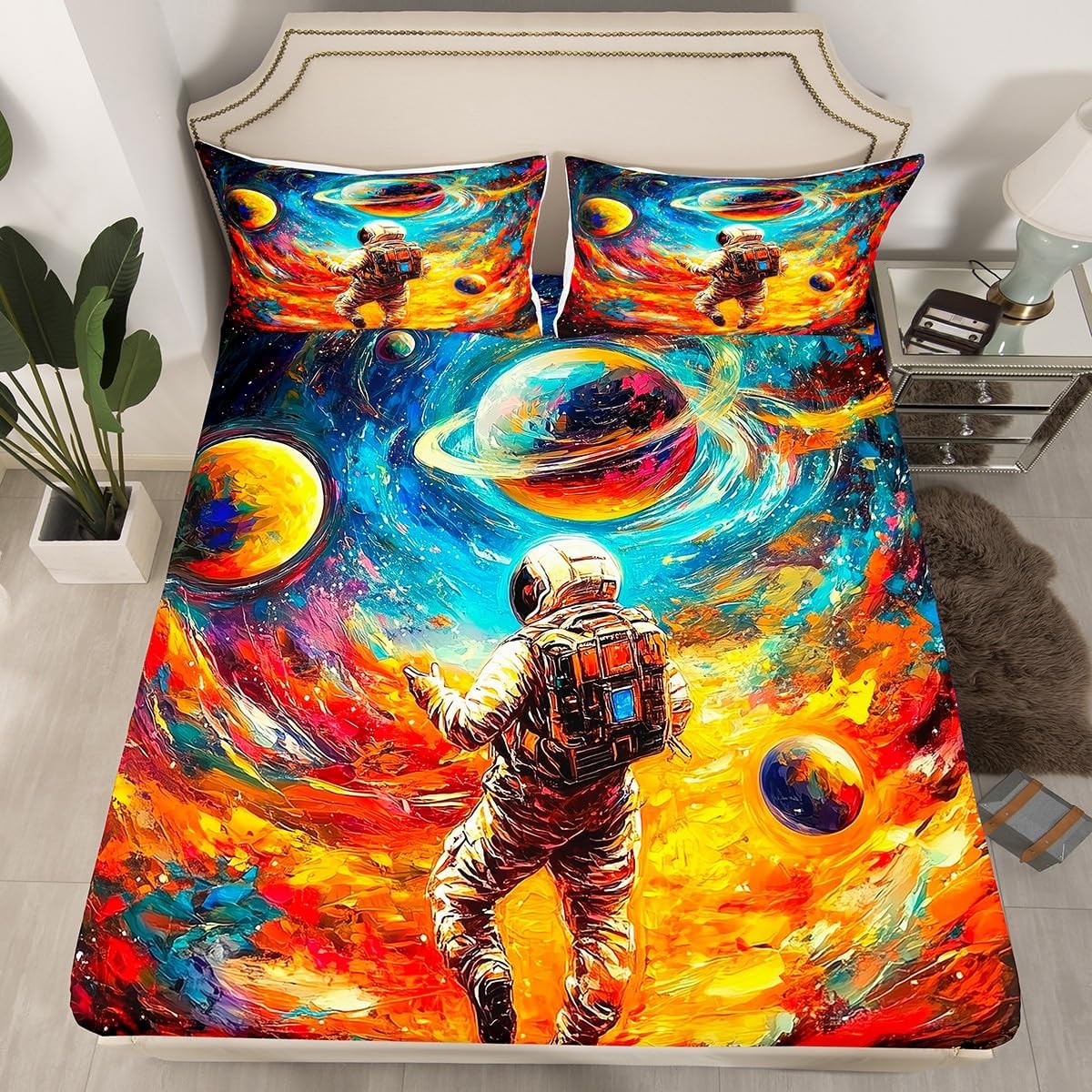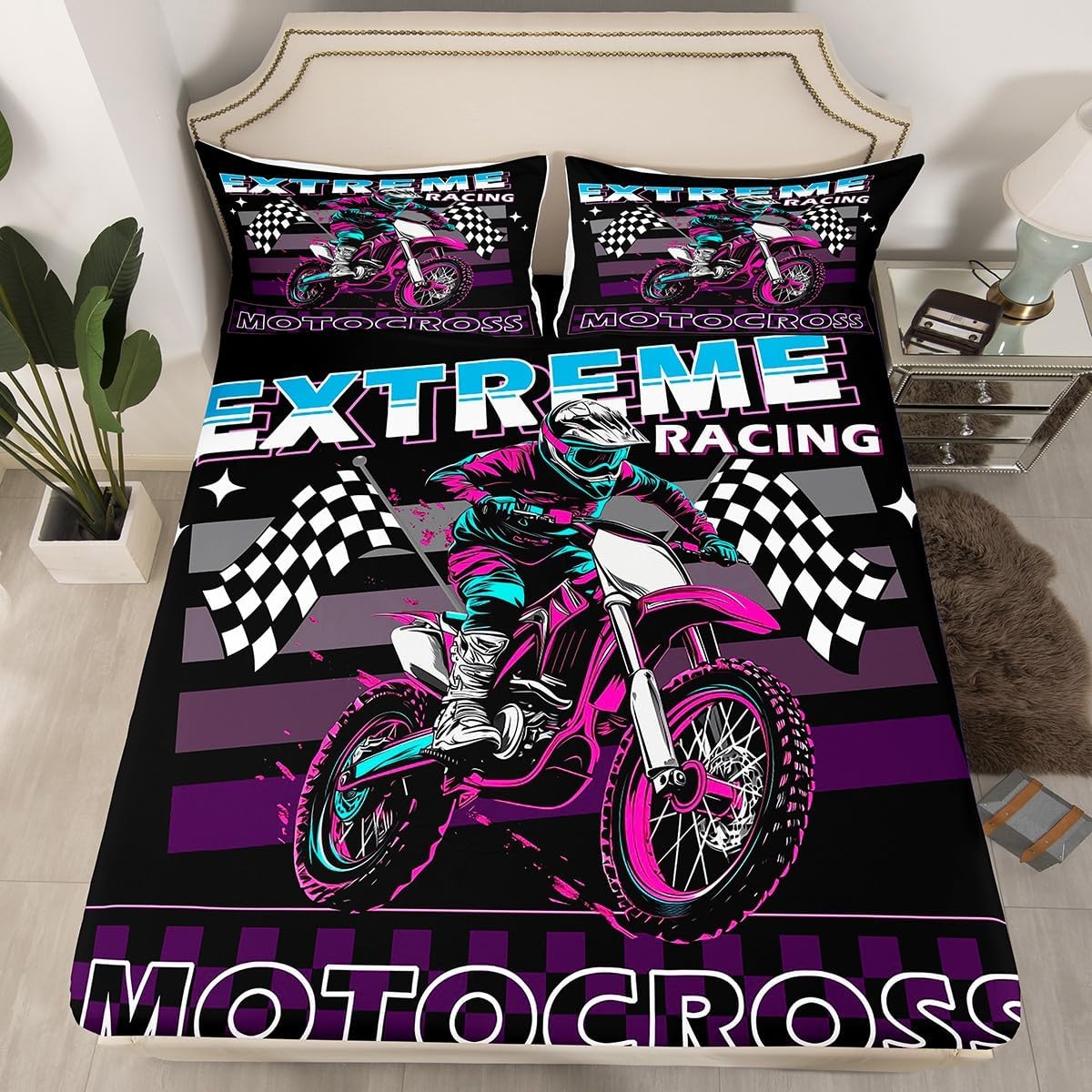 Package Include:fitted sheet,Pillowcase.No flat sheet or top sheet. Fitted sheet set pattern bedding set, simply decorating your rooms any time you want, bringing you fresh feel for year round use. Made from polyester,the sheet set offers long lasting strength,anatural resistance to shrinking and a noticeably soft hand feel. Size Information: Twin size : 1 Fitted Sheet 39"W x 75"L x 16"H ,99 x 190 x 41cm , 1 pillowcase 20" x 30", 51x75cm . Full size : 1 Fitted Sheet 54"W x 75"L x 16"H ,137 x 191x 41cm ,2 pillowcases 20" x 30", 51 x 75cm . Queen size : 1 Fitted Sheet 60"W x 80"L x 16"H ,152 x 203x 41cm ,2 pillowcases 20" x 30", 51 x 75cm . Personalize your bedroom: Beautiful design and colorful print, makes your bedroom unique and brings you a wonderful dream. Washing instructions: Machine wash separately in cold water,hang dry, do not bleach. Occasion: The soft Fitted Sheet bedding sets designed for Children ,Adult, Men, Women, Teens. This Fitted Sheet set is also suitable for full seasons, Spring, Summer, Autumn and Winter.