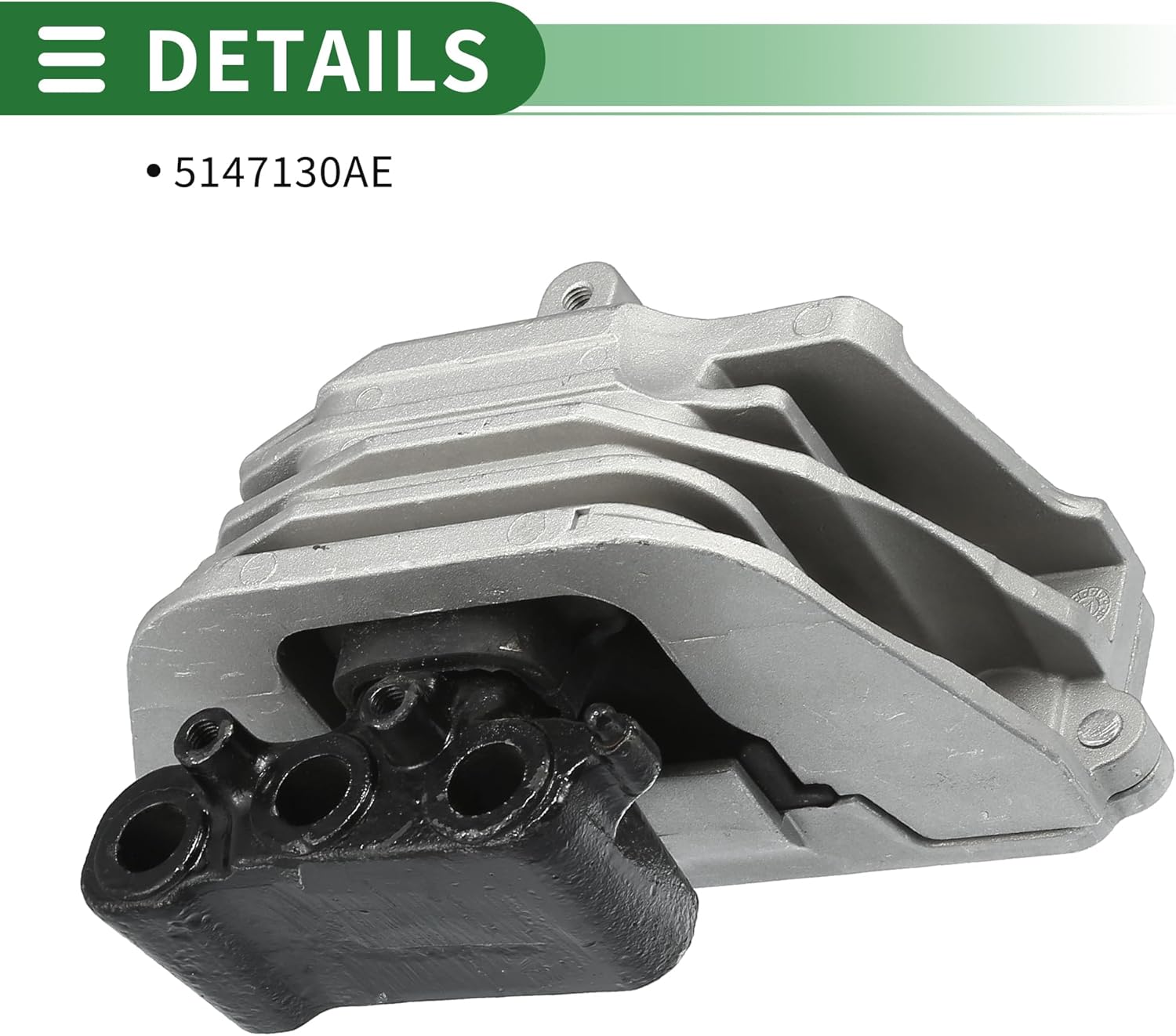 Vehicle Specific Fit:for Chrysler 200 2.4L 2012-2014for Dodge Avenger 2.4L 2012-2014for Dodge Journey 2.4L 2011-2020Product Details:OE Number:5147130AEColor: Black, Silver ToneMaterial: Iron, RubberAdvantage:Made of Metal and rubber, effectively eliminate these vibrations and prevent them from being transmitted into the car, improving the comfort of driving.To ensure the normal operation of the vehicle and the comfort of driving, regularly check and replace the damaged engine mount are recommended.Kindly Notes:This is non-OEM product, accessory ONLY!Please carefully check your vehicle model year to ensure you get the correct part.Package Content:1Pc Engine Motor Mount