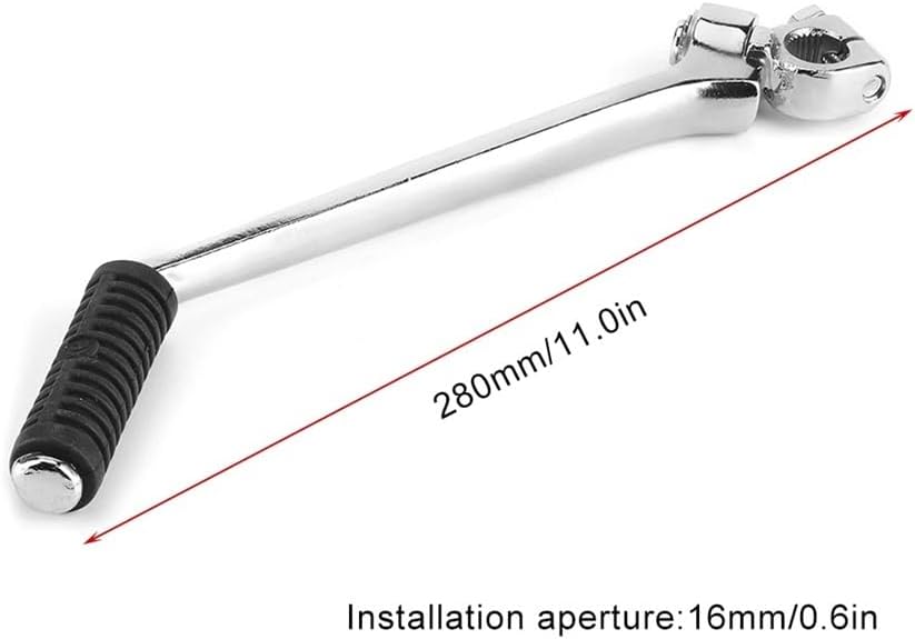 16mm 280mm Kick Start Steel Alloy Starter Lever for PIT PRO Trail Dirt Bike for 150c 200cc 250cc:Feature:1. Upgrade kick start for PIT PRO Trail Dirt Bike for 150c 200cc 250cc.2. The body of lever is made of steel alloy Made of for and toughness.3. Rubber kick part with anti-slip grooves to make sure the safe and effective starting.4. replacement of the damaged starter rod for better riding pleasure.Made of: Rubber + Steel AlloyColor: Silver + BlackTotal Length: Approx. 280mm/11.0inDiameter of Mount Hole: Approx. 16mm/0.6inPackage List:1 x Kick StartWe take pride in providing attentive after-sales service, ensuring any questions or concerns regarding your motorcycle kickstarter are promptly addressed.
