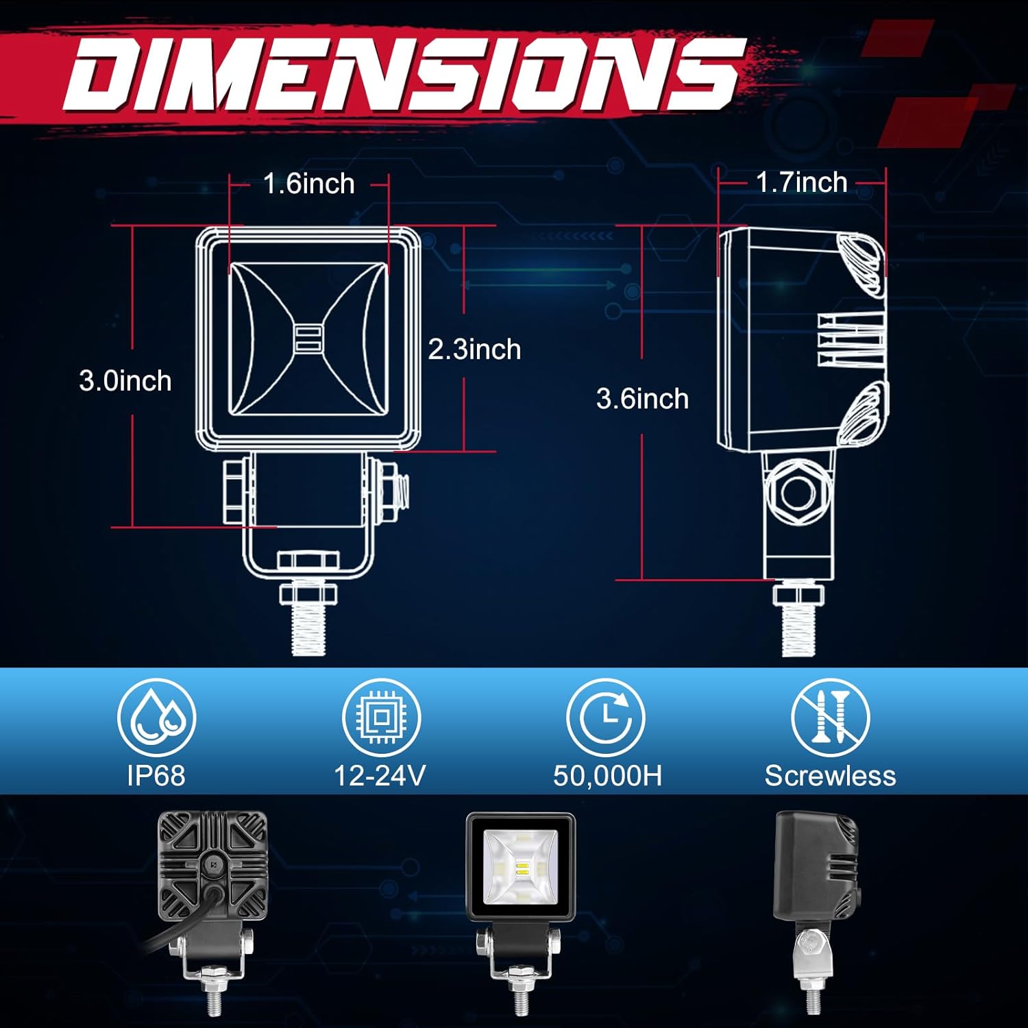 | Included Components | 2pcs 2inch pods light and necessary mounting hardwares |