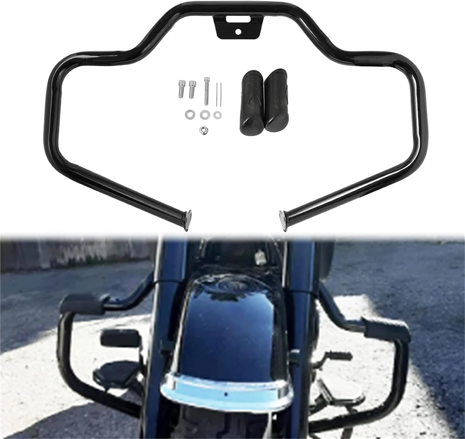 • Durable Construction: Made from materials, our motorcycle crash bar offers exceptional strength and durability, allowing it to withstand the rigors of road use while maintaining its integrity over time.