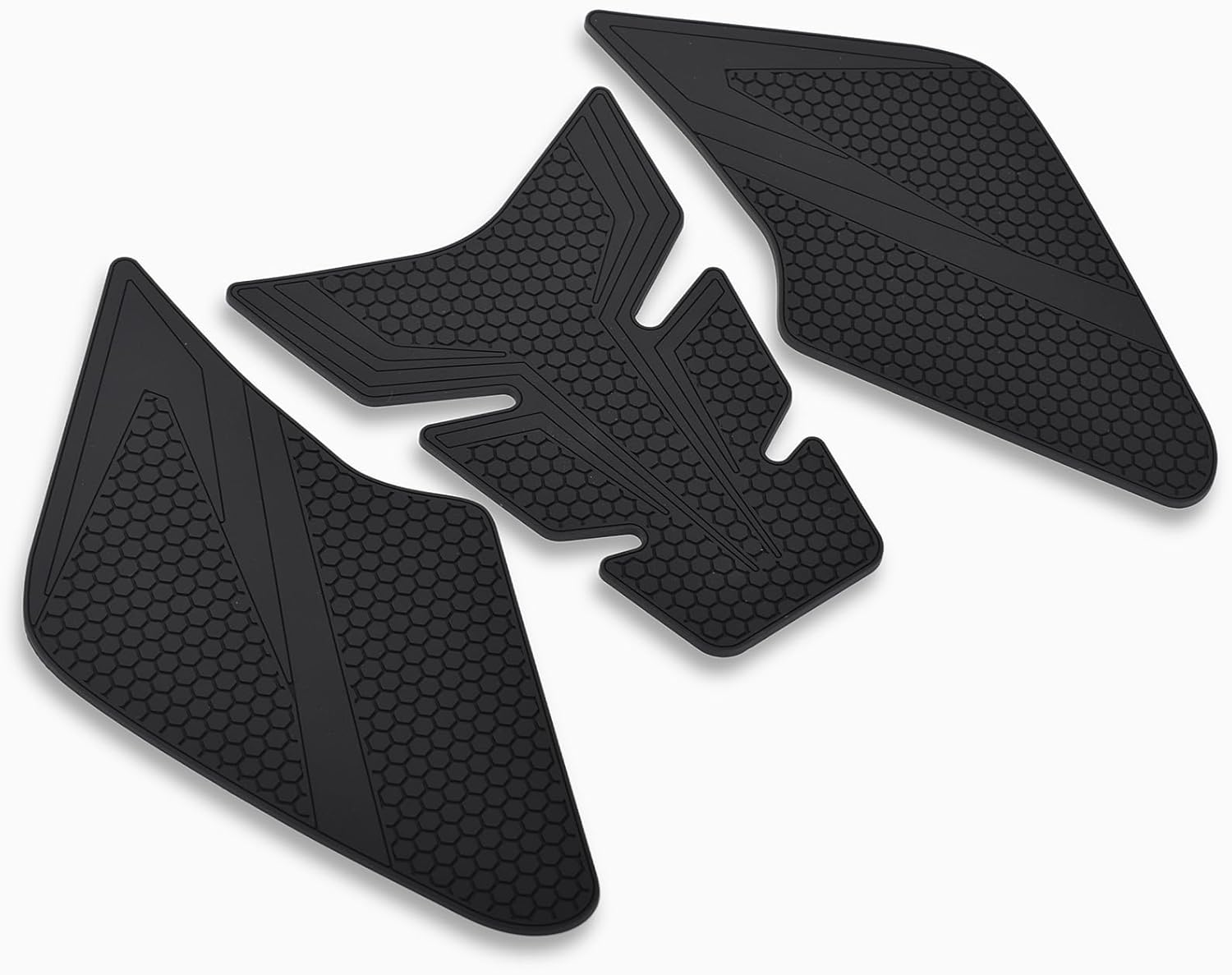 Enhance your riding experience with these premium tank grip protector pads designed specifically for the Suitable for -Suzuki GSX-8S 2023- GSX-8R 2024- years- motorcycle. set features a sophisticated honeycomb pattern that provides superior grip and protection for your fuel tank. The black, anti-slip surface helps maintain control while riding and shields your tank from scratches and wear. Each pad is precisely cut to fit the contours of your ensuring perfect coverage of key contact areas. The durable material maintains its appearance and functionality through regular use, while the sleek design complements your motorcycle's aesthetic. These tank grips offer both practical protection and tactical advantage, making them an essential upgrade for any owner who values both performance and preservation of their machine's appearance.