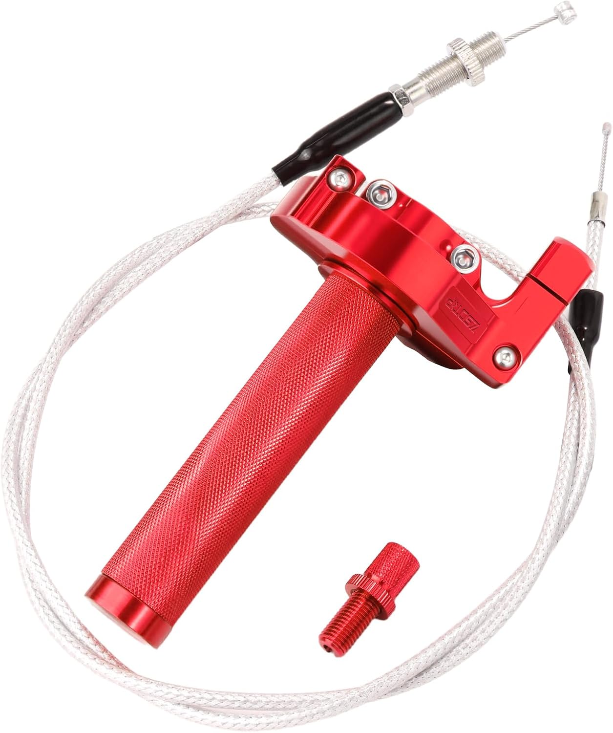 **Product Description: Motorcycle Throttle Grip Assembly with Cable**Upgrade your riding experience with our Motorcycle Throttle Grip Assembly with Cable, designed for quick release and easy installation. This high-quality throttle grip features a 22mm/7/9" CNC Aluminum construction, ensuring durability and precision for all types of motorbikes, including dirt bikes, pit bikes, motocross machines, quads, and ATVs.Designed for universal compatibility, this throttle grip assembly allows for quick installation and removal, making it perfect for riders who value efficiency and performance. The smooth operation and ergonomic design provide excellent control, enhancing your overall riding experience. Whether you're hitting the trails or the track, this throttle grip assembly will help you maintain optimal performance and responsiveness. Don’t settle for less; equip your motorcycle with our reliable throttle grip and feel the difference in your ride!