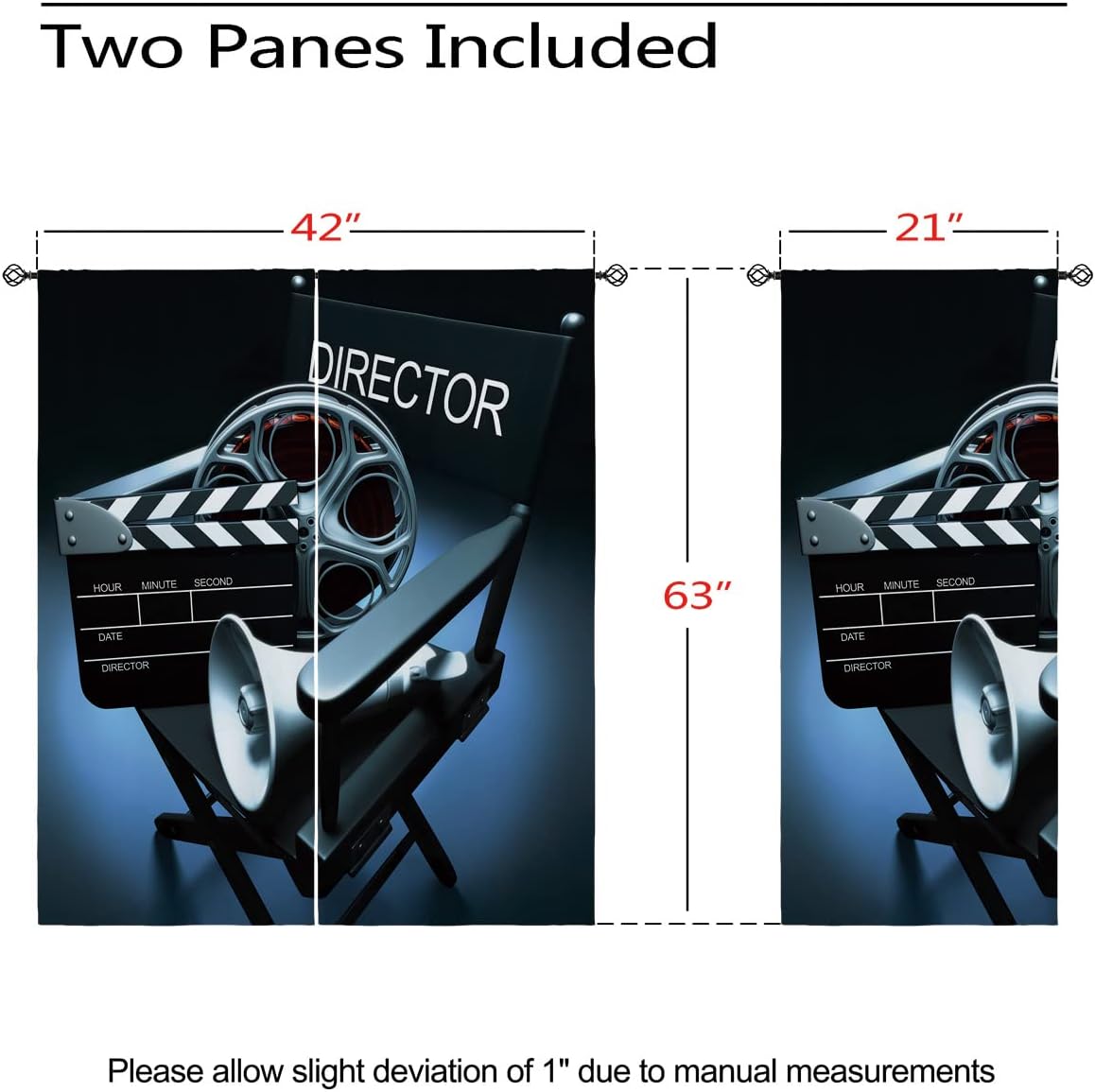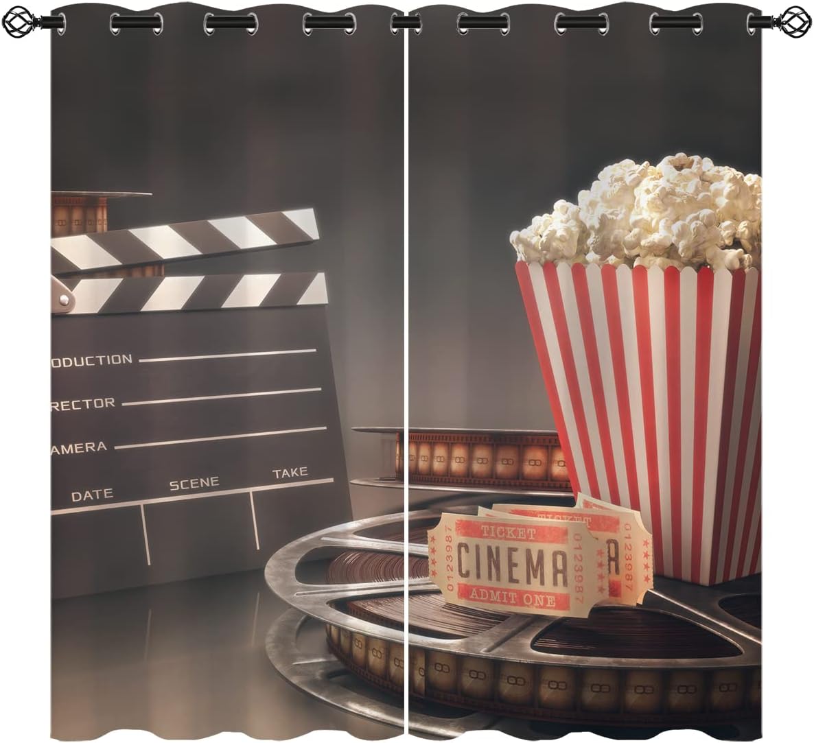 These print curtains are perfect for Living room, bedroom, kids room, kitchen, yard, patio, parlor, sliding door with Movie Theater,Hollywood Motion Cinematography pattern.- Unique design:· Save energy costs by insulating against heat and cold.· Reduce noises from busy streets and high-traffic areas.· Protect furniture from sun damage and fading.· Provides complete privacy when needed· Perfect for any bedroom, office kids room and living room.- Package Included:· Blackout window curtains 2 Pcs set ( two panels).- Material:· Our Blackout Curtain Liners are crafted from a durable soft and thick triple weaved blackout fabric which can block out sunlight and UV rays. The darker color of the fabric, the more light it can block.- Easy Care Instructions:· Machine washable in cold water· Do not bleach.· tumble dry on low· low temperature ironing- Notes:· For your curtains to be more perfect, please choose a size 5-10 Inch larger than the actual window width.· here may be slight differences in colors on different displays. If you have any questions about the product, please feel free to contact us.