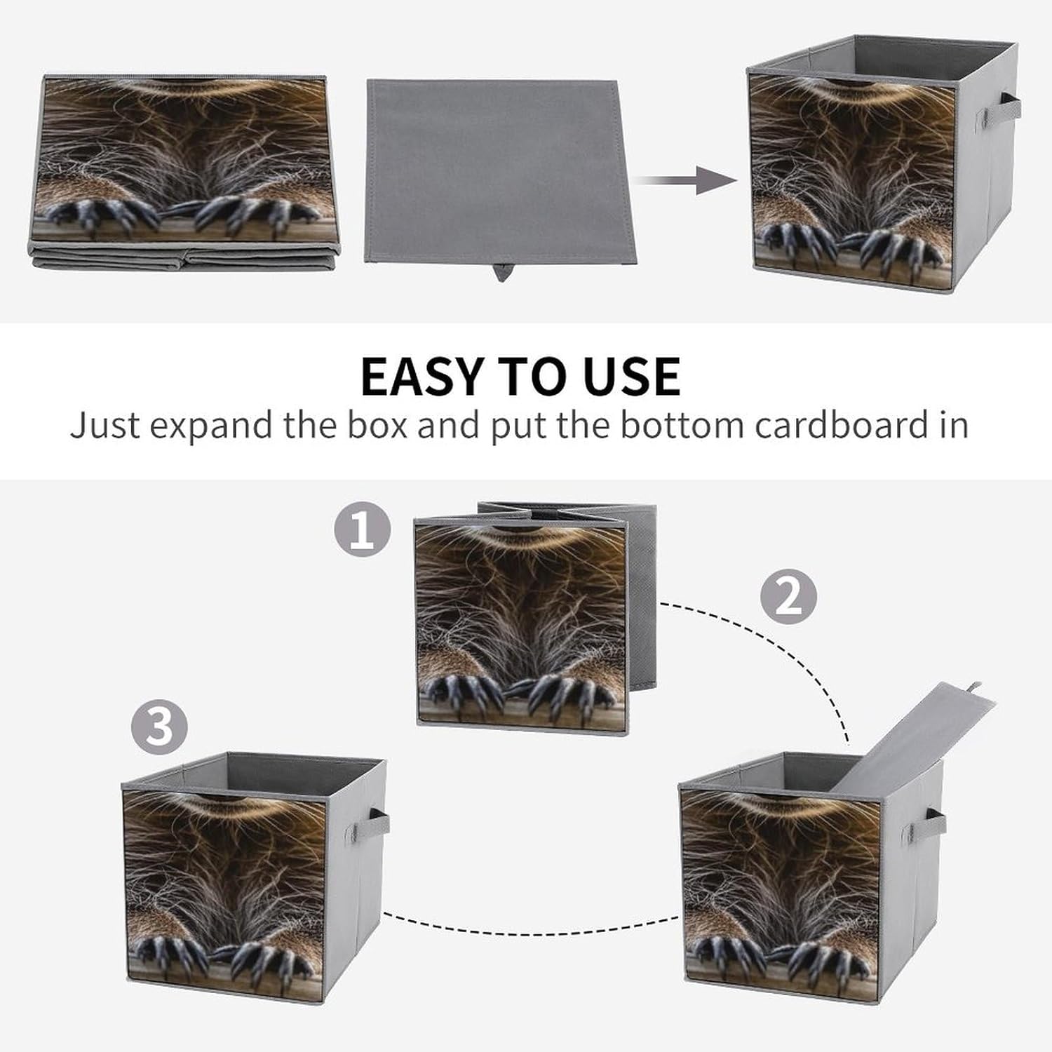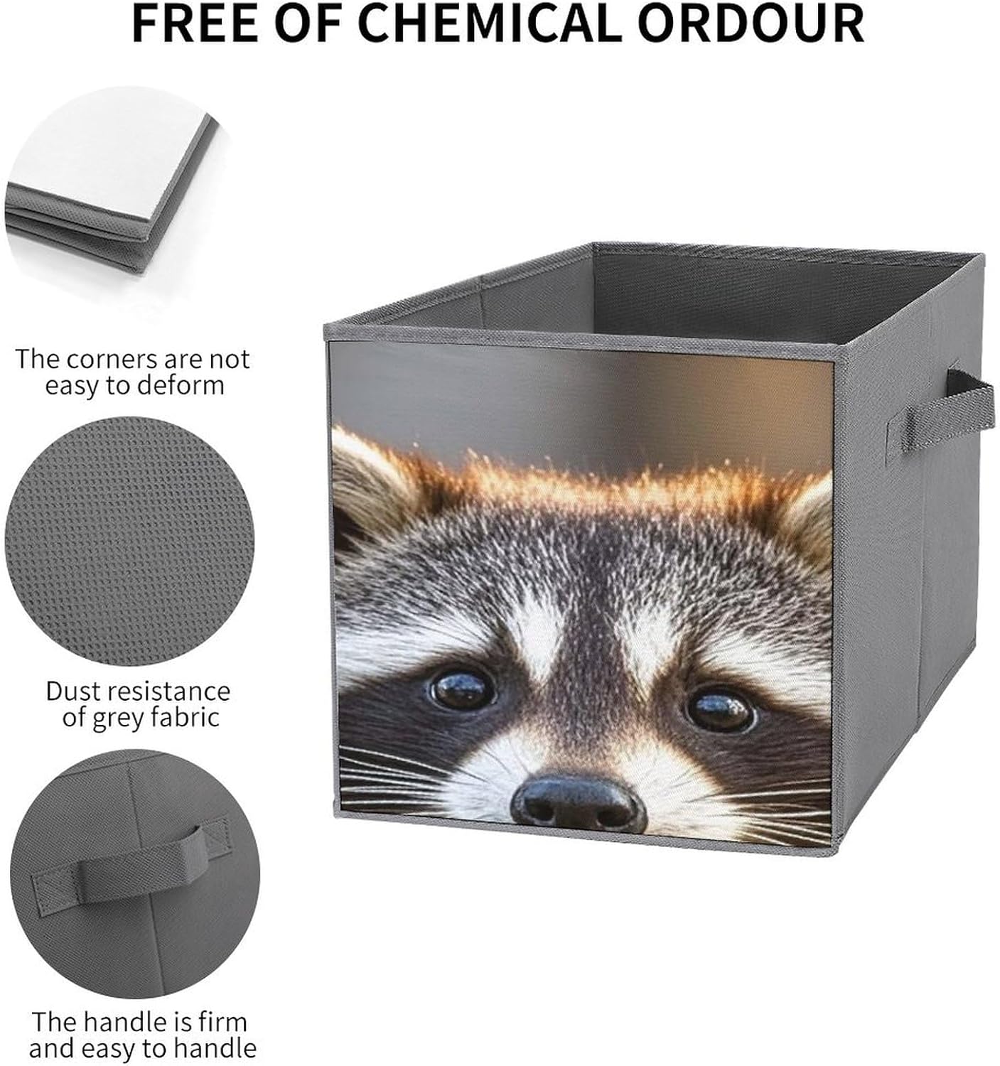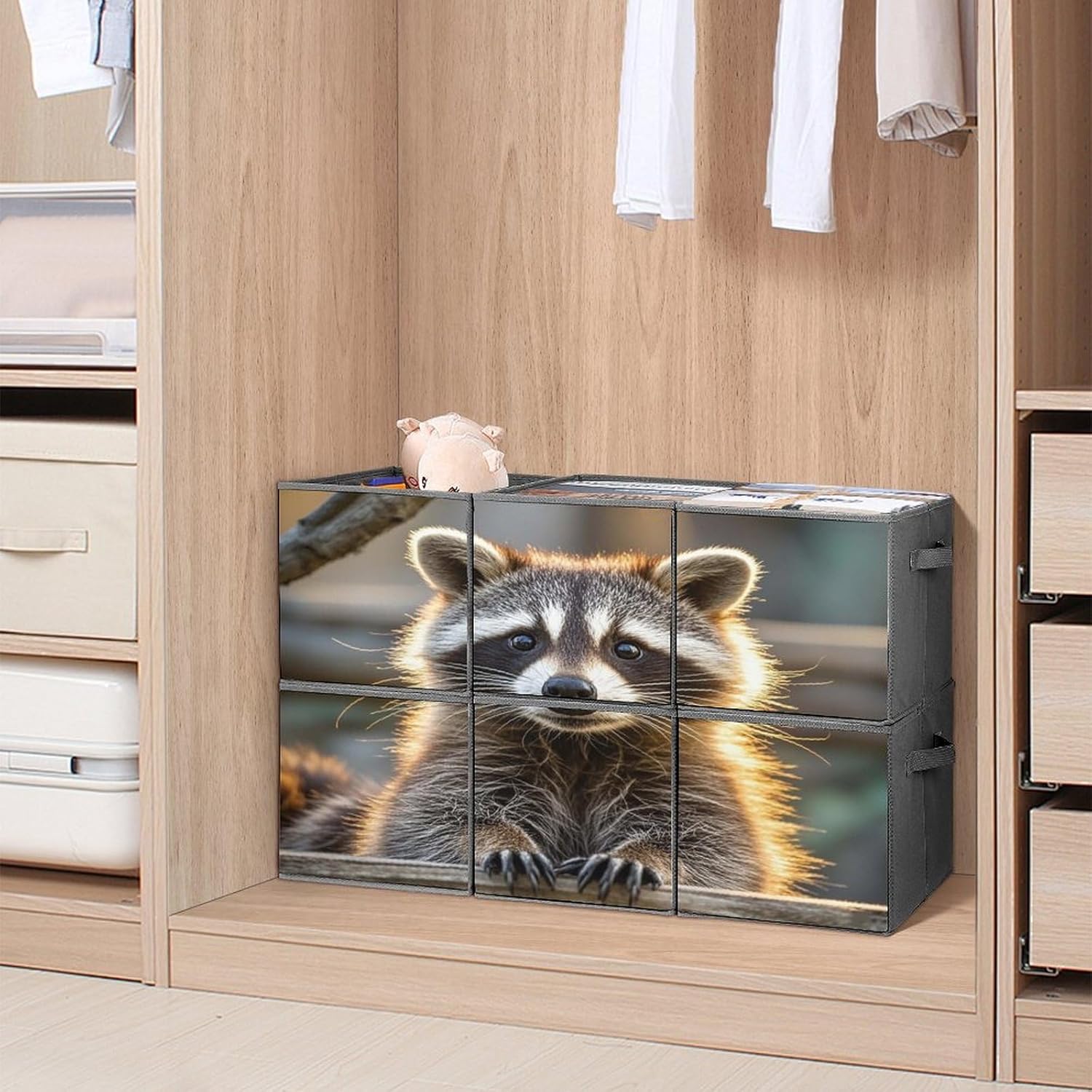Cute Raccoon printed Fabric Storage Bin Provides An Effective Solution For Storage And Organization. Can Maintain The Orderliness Of Household Items. Large Storage Bags Are Perfect For Storing Clothes, Baby Products, Towels, Toys, Pet Supplies, And More. Foldable Cubes Storage Bag Is Made With A Unique Style, Exquisite Details, And Craftsmanship. Clothes Organizer Container Is Perfect As A Holiday Gift For Friends And Family