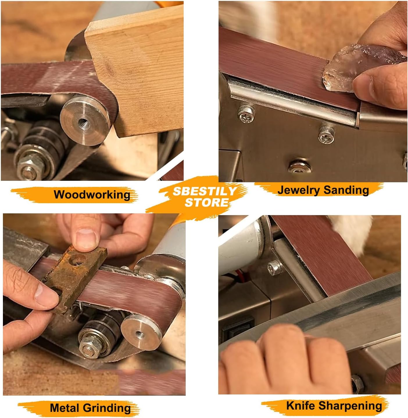 Package include : 1 x Mini Belt Sander 1 x Variable Voltage Speed Regulating Power Supply 1 x Polishing Wheel 1 x Grinding Wheel 1 x Sharpening Wax 1 x Dust Cover 3 x Hex Wrenches 2 x Screws 30 x Sanding Belts ( 330mm*30mm/13×1.2 inches ) Product Details: Brand: AURSNICO Material: 304 stainless steel Product Dimensions: 6.69"L x 4.33"W x 5.51"H Grit Type: Very Fine Input Voltage: 110 or 220 Volts Motor Type: 775 motor Power Source: Corded Electric AC Adapter Current: 12 Amps Grit Number: 1 Maximum Rotational Speed: 9000 RPM Item Weight: 4.45 pounds Item model number: Mini Belt Sander