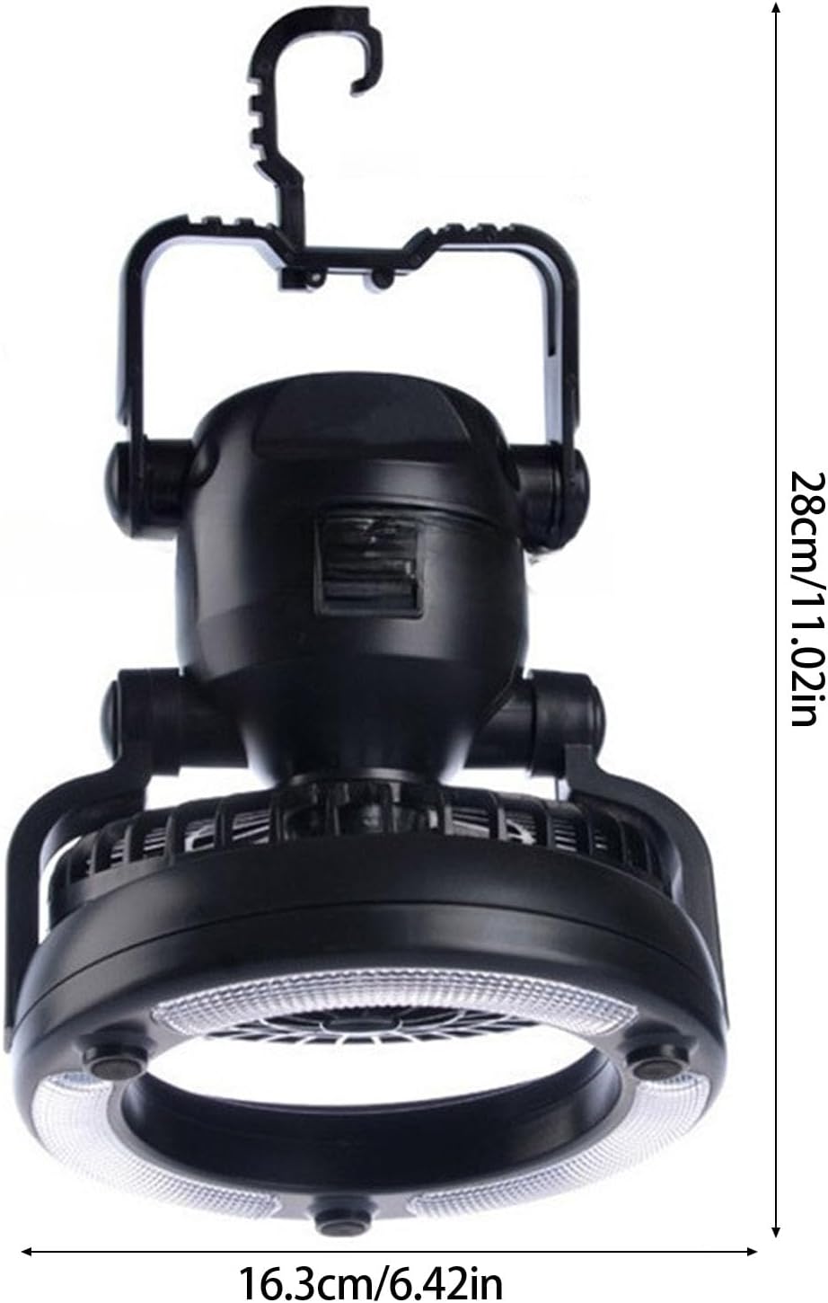 Multifunctional Outdoor Fan With Hanging Hook And LED Light Regulable Fan For Hiking BackpackingFeatures: Double function LED Camping Tent Fan Light combines 18 bright LEDs with a powerful fan, delivering 37 hour lighting and cooling for outdoor.regulable base allow versatiles mounting in tents or on tables, while its light weight waterproofed plastomer ensures durability.For campers, backpackers, and family pursues portables climate controls during hiking trip, beach, or backyard gatherings.Provide 360 degrees airflows in tents, or rainy environment with compacts dimension.Weather resistant construction and extended battery lifes make this outdoor fan light essential for fishing trip, campsites cooking, or emergencies.Specifications: Dimension:28x16.3cm/11.02×6.42inComponent:plastomerPackage Includes: 1pc LED outdoor camping tent fan lightNote: 1.Please allow 1-2cm errors due to manual measurement, making sure that you will not mind before order. 2.Due to the differences between different monitors, the picture may not reflect the actual color.