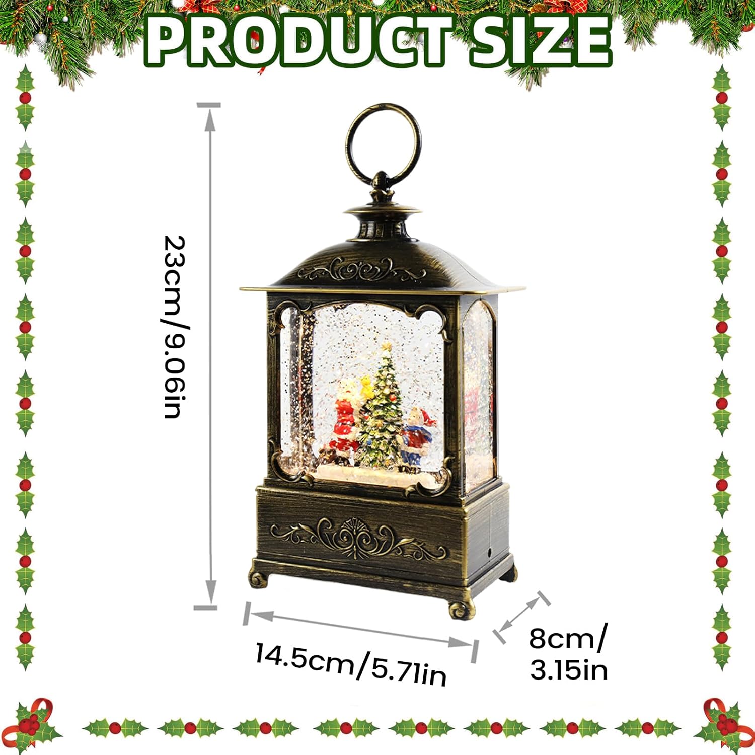 Enhance your holiday decor with this Christmas snowball lantern that features music and a convenient timer to create an effortless festive atmosphere. The PVC globe houses charming Santa, snowman or Christmas tree figurines, surrounded by glitter for a sparkling effect. Powered by USB or AA batteries, it can be placed anywhere: ledges, desks, shelves or tables. The 6-hour automatic timer changes light and music daily, creating without constant attention, making it ideal for decorating your home or gifting to loved ones. Specification Product Name: Christmas Night Light Product size: about 23x14.5x8cm/9.06x5.71x3.15inch Material: PVC. Power supply: USB connector/standalone AA battery Style: Santa Claus; Snowman; Christmas Tree List 1 x Christmas night light. Note: 1. Due to lighting effects and viewing angles, there may be color differences in the product. 2. Due to manual measurement, there may be errors in the product size, please understand.