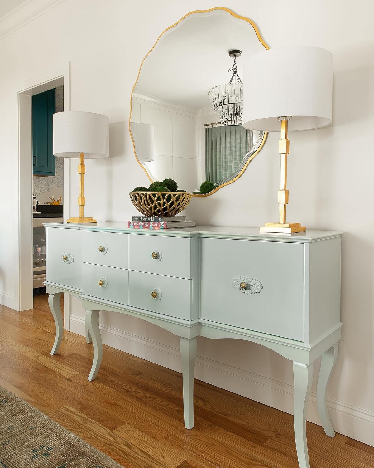 Showcasing A Feminine Scalloped Edge, This Shaped Wood Mirror Adds Whimsical Flair To Any Design. The Mirror Is Finished In Aged Gold And Has A 1 1/4" Bevel.