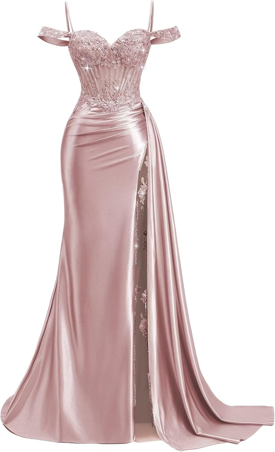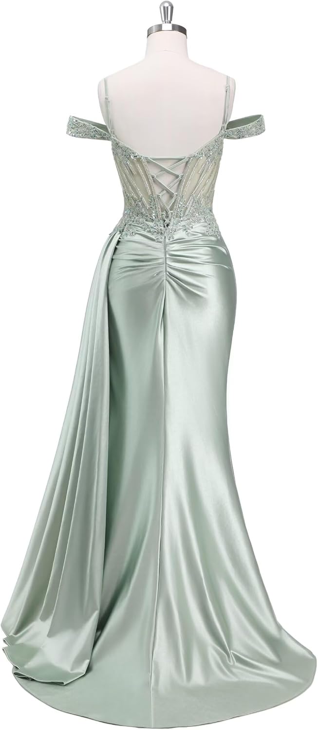 Welcome to MYDRESS Off Shoulder Mermaid Prom Dresses with Slit Beaded Long Satin Formal Cocktail Dresses Silhouette:Mermaid Customized Size: We support custom dresses, please contact us and send the following size A.Full Bust _____ inch or ___ cm. B.Waist _____ inch or ___ cm. C.Hips _____ inch or ___ cm. D.Height: _____inch or ___ cm. E.Hollow (collarbone)to floor____ inch or ___ cm. F.Shoulder to Shoulder ____ inch or ___ cm. G.The heel of your shoes: _____inch or ___ cm. H.The date you need the dress____. OTHER NOTES: 1.The real color of the item may be slightly different from the pictures shown on website caused by many factors such as brightness of your monitor and light brightness. 2.Please allow slight deviation for the measurement data.