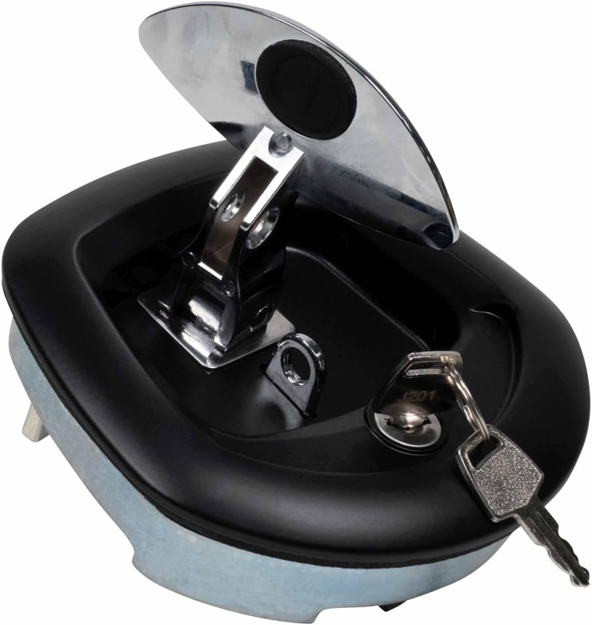 Pack Size: 2 PackWhale Tail Latch for Trailer Tool BoxesBlack Pwder CoatedLatch is Chrome Paddle StyleComes with Keyed Alike KeysCan be used on Trailer Tool Boxes and Step Boxes.Please measure first to ensure yours will fit. Diagram in Photos for reference.