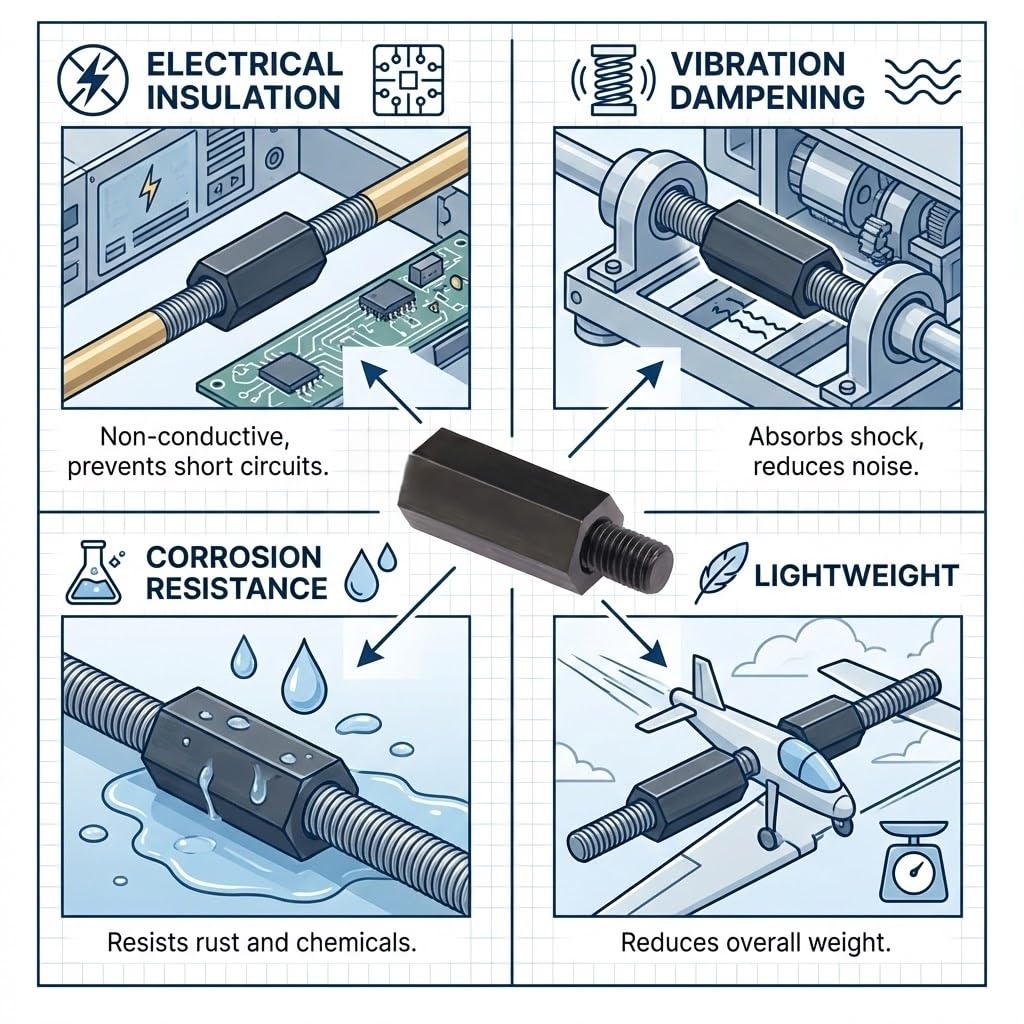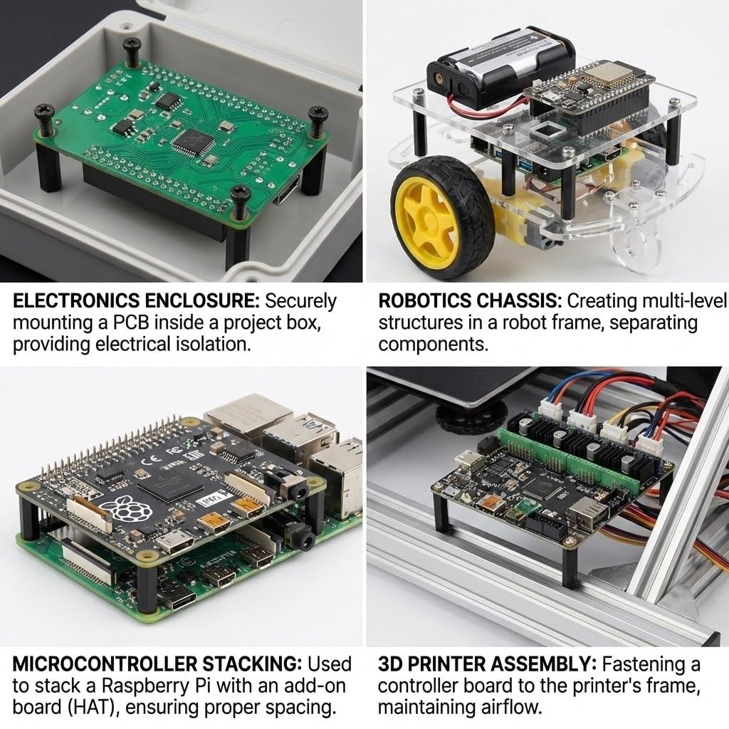 Specification: Male Female Nylon Spacers Material: Nylon Color: Black Thread Size: M3 Female Total Length: 18mm/ 0.70" Hex spacer width: 5.6mm/ 0.22" Male thread Length: 6mm/ 0. 24" Female Thread Length: 12mm/ 0.47" Feature: Non toxic, corrosion-resistant, uniform thread path, no burr, clear thread without slipping. Application: Used for FPV drone quadcopter, computer, circuit board. Package Included: 150pcs M3 x 12 + 6mm spacers