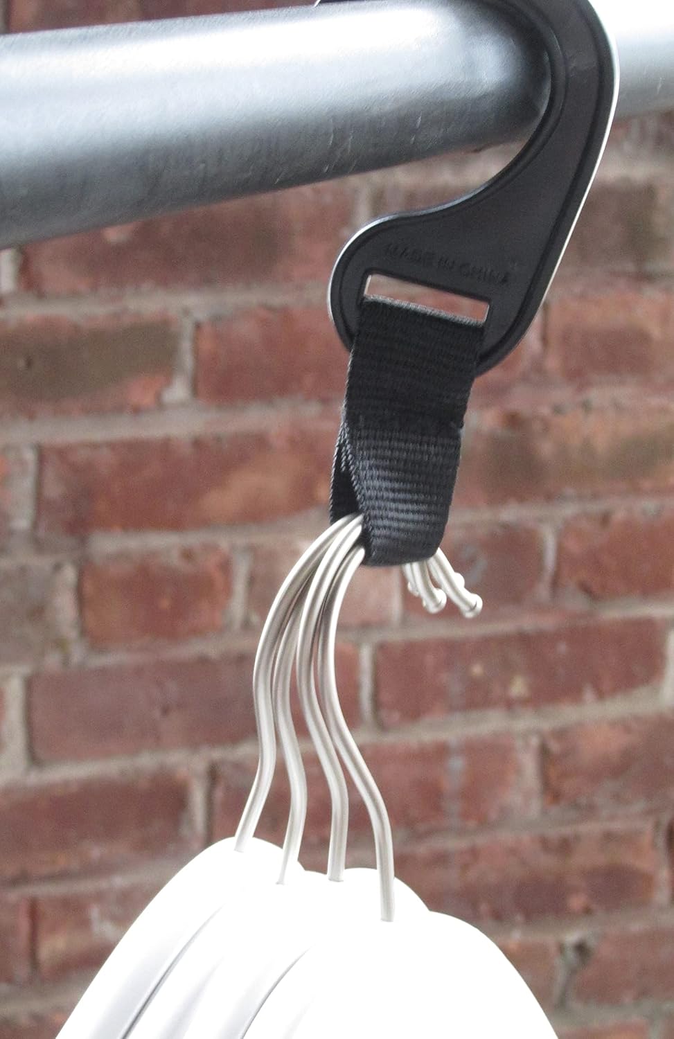 This heavy duty, space saving plastic hook with an attached nylon loop strap for clothes hanger management makes a great addition to any backroom/stockroom area. The black hook and strap measures 5 ½” in length from top to bottom, sturdy enough to gather and hold several clothes hangers at once. The hook itself measures 2” in width and the nylon strap measures 1”W x 2 ½”L. This space saving tool is both durable and practical for any retail environment that uses a hanger management system. 100 per carton.