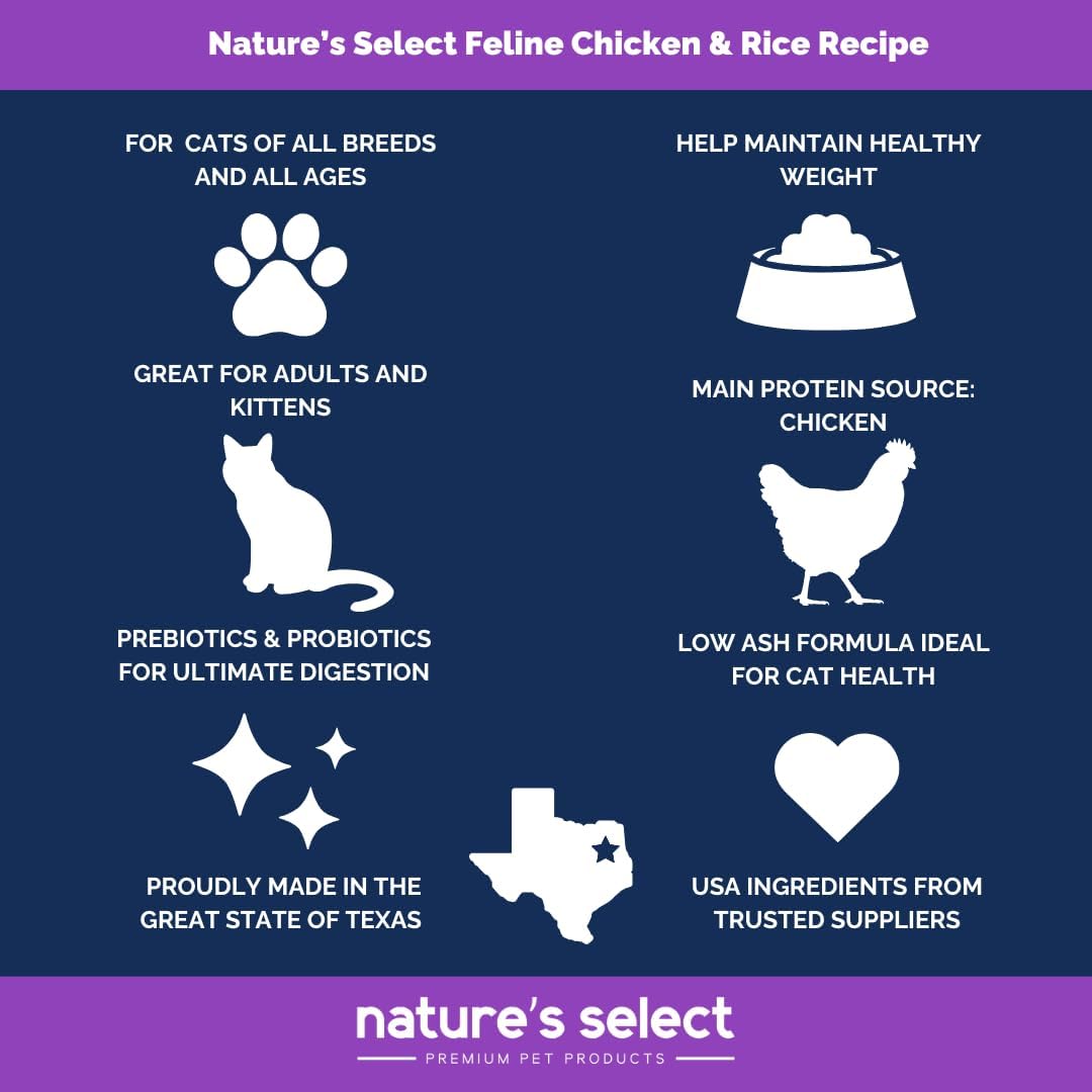 Our Nature’s Select Feline Chicken & Rice Recipe is ideal for growing kittens and cats of all ages. Kitties will love our blend chicken & rice formula.