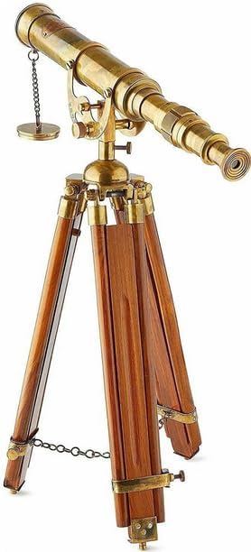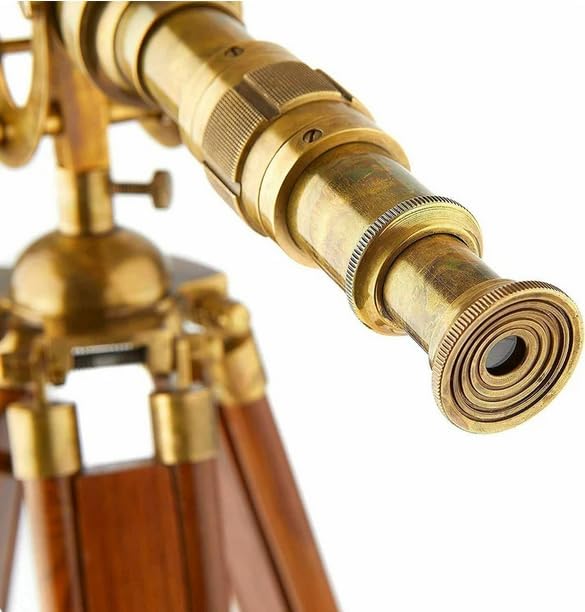 Nautical Handcrafted Vinatge Brass Telescope With Wooden Tripod Stand Maritime Functional Telescope