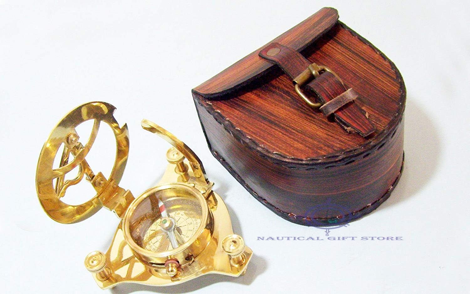 NAUTICAL MARITIME WEST LONDON BRASS SUNDIAL COMPASS WITH LEATHER BOX NAUTICAL DECOR 3'' MATERIAL :BRASS SIZE :3 FINISHING:POLISH