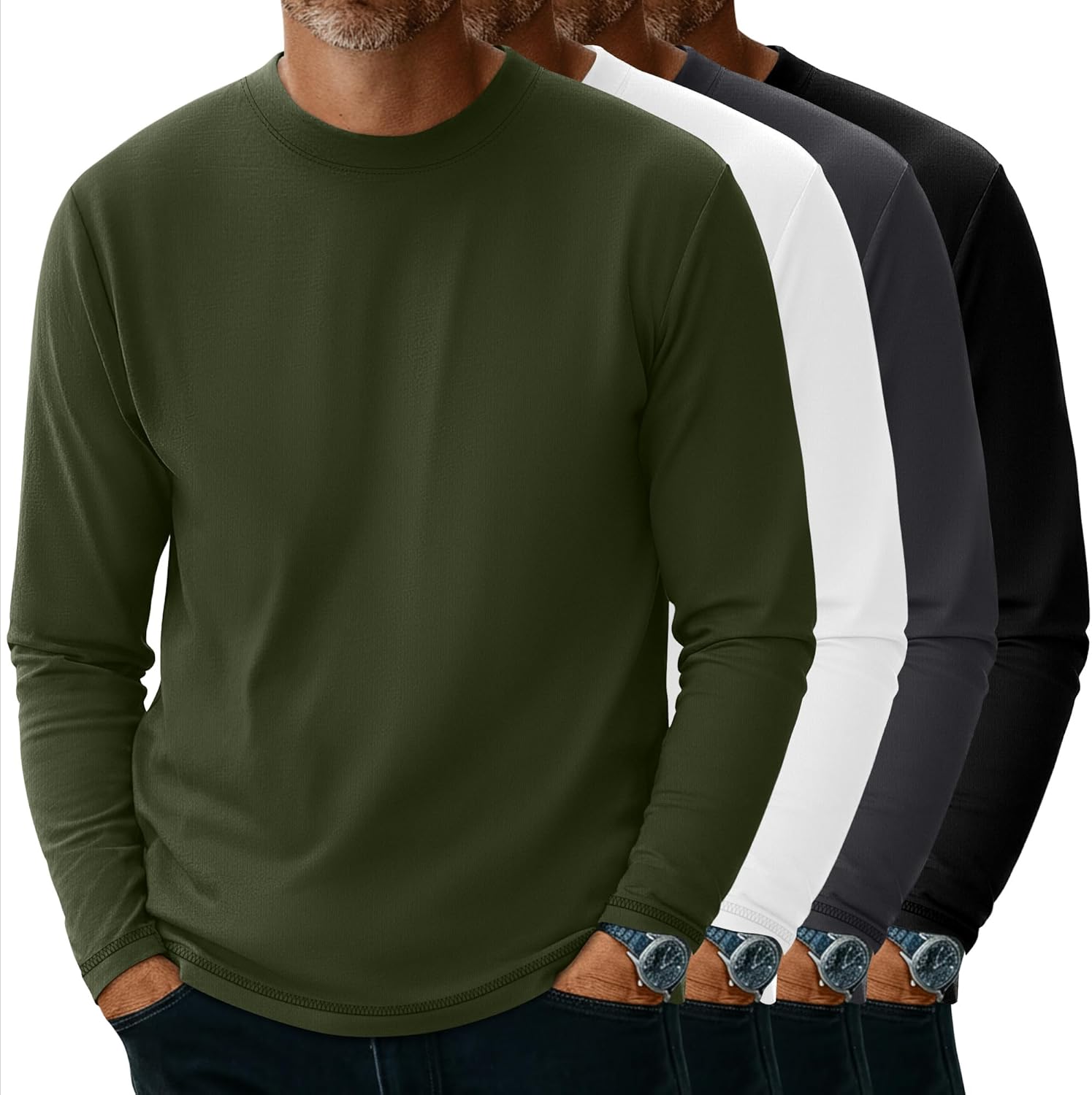 Features: Washing max 104°F, normal process, don't tumble dry, don't bleach. Hand-washed or machine-washed and hung up to air dry Please refer to our size chart in product description/picture before ordering to ensure accurate fitting Specifications: Material: 95% Cotton, 5% Spandex Package includes: 4 x Men's long sleeve t-shirts Notes: Manual measurement, please allow slight errors on size. The color may exist a slight difference due to different screen displays