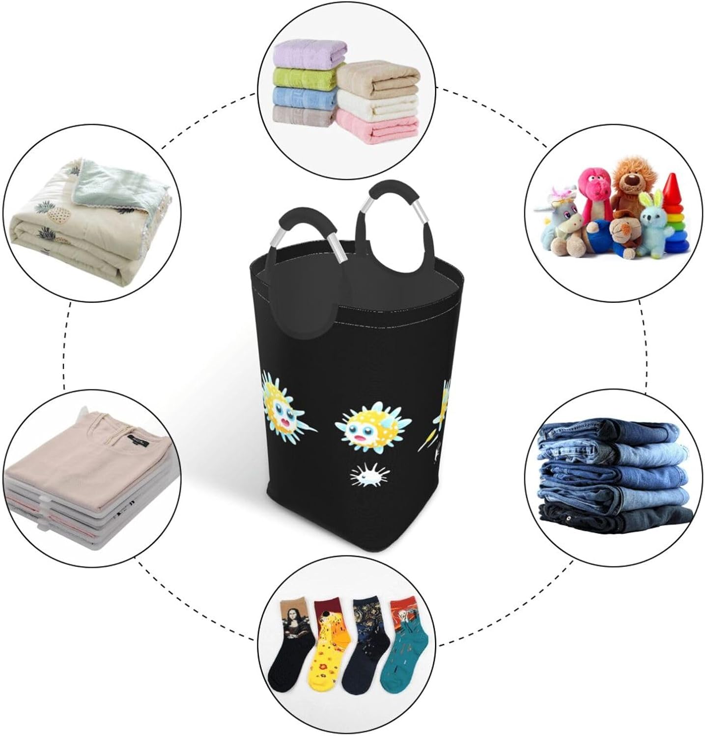 Our Neon pufferfish dirty clothes storage bag is made of polyester, which is lightweight and flexible. It can maintain a stable shape even under heavy pressure and collision. At the same time, the incorporation of Oxford cloth material significantly improves the durability of the product, and it is resistant to wear, bumps and pulling. The storage bag is designed with a large capacity, which can easily carry winter clothes, daily clothes and a variety of sundries. It is easy to carry and store, and fits tightly into the gap of the suitcase after folding. The aluminum handle is sturdy and reliable, supports hanging, and is suitable for a variety of places. In terms of design, it adopts leak-proof technology, combined with waterproof coating and precision sewing, which is effectively waterproof. The exterior uses cutting-edge transfer technology, and a PE board support is added at the bottom to ensure stable load-bearing and prevent tipping. This storage bag is practical and easy to use, and is an ideal choice for travel and home.