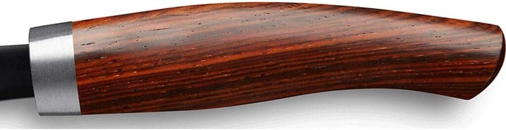 Perfect For Detail WorkThe short, 90mm blade is perfect for preparation and cleaning. The office knife can also be used for peeling. The Nesmuk JANUS blades are made from a high performance steel with niobium content and coated with our Diamond-like-Carbon-Coating (DLC).The Finest DetailsEach ferrule is either matte brushed or polished by hand. To avoid sharp edges, the top of the ferrule is chamfered.Flawless CraftsmanshipHandle, blade and ferrule are assembled in absolute precision. The seamless handle fits perfectly in your hand and no edge disturbs the haptic.Specifications:Blade: 90 mm, niobium steel, 60 HRC, flat grinding, DLC coatingClamp: High-gloss polished stainless steelInclusive: High-quality matt black box, certificate of authenticityModel: J5BR90, J5C902013, J5EM90, J5JB90, J5JI90, J5ME90, J5MB902013, J5ZE90