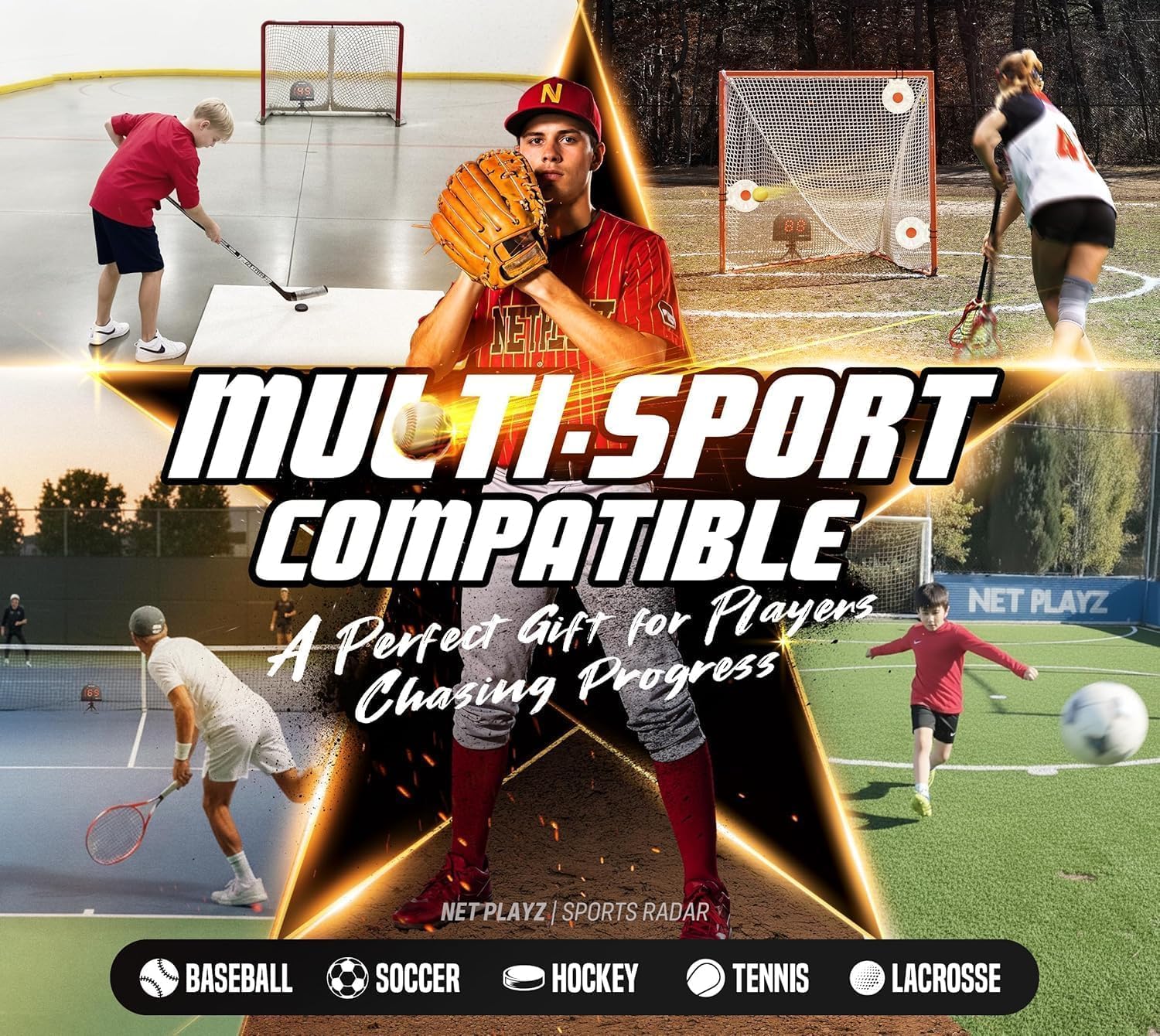 NET PLAYZ Smart Pro Baseball Speed Radar is a precision training instrument designed for baseball coaches and players who need accurate speed measurement for pitching and hitting practice. Equipped with advanced radar technology, it measures speeds from 3 to 150 mph (5 to 199 kph). For best accuracy, ensure the ball flight passes within the optimal measurement zone, approximately 20–50 ft from the radar, or position the radar about 45° beside the batter when measuring swing motion. This range provides the most stable, precise, and repeatable readings when the motion passes directly through the radar’s detection area. Placement is critical for precise readings. During solo pitching drills, position the radar behind the pitching net, facing the ball’s direction of travel. In pitching drills with a catcher, place it in front of the pitcher, aligned with the throwing path. For hitting drills, set it at about 45 degrees to the side of the batter, aimed toward the swing direction. When properly aligned, the radar delivers accuracy comparable to top-tier professional sports systems, providing reliable and repeatable results. Unlike traditional gun-style radars that require a second person to operate, the Smart Pro allows true solo use. Simply mount it on the included tripod, align it, and start training immediately. The hands-free setup ensures consistent measurement and helps players focus entirely on their drills, ideal for both individual and team practice sessions. An exclusive voice announcement feature broadcasts every speed reading in real time, allowing uninterrupted solo training. This feature is unique to NET PLAYZ and is especially helpful when visibility is limited or when players are not wearing glasses. The data logging system automatically records the last ten pitch or swing speeds for quick recall and comparison, providing data-driven insights to support steady performance improvement. The large 4.7" × 2.4" LED display features bright red digits that remain clearly visible in both daylight and low-light conditions, outperforming standard sports radars that typically use smaller 1.2"–4.3" displays. In addition to baseball, the radar also detects speeds in soccer, hockey, tennis, and lacrosse, making it a versatile training tool across multiple sports. Each unit includes an aluminum alloy tuning fork and silicone hammer for calibration, a tripod for stable setup, and a protective carrying case for convenient transport and storage.