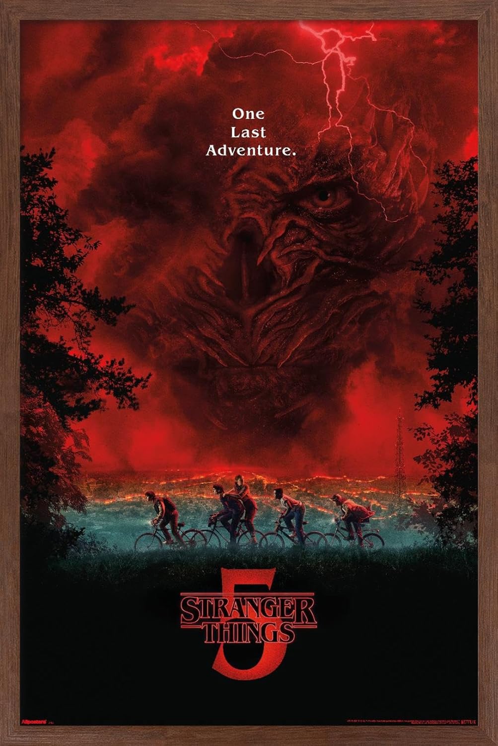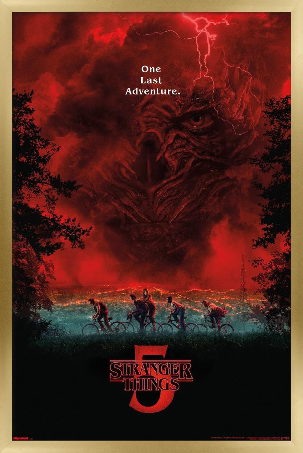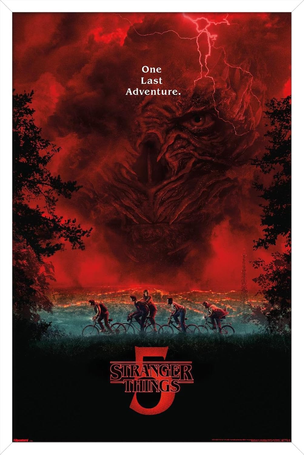 Allposters framed posters are everyone's favorite room decor! The clean, modern design and premium satin finish of this Netflix Stranger Things: Season 5 (2025) - Key Art Wall Poster will make a bold wall decor statement in any room. Decorate the bedroom, bathroom, kid's room, living room, office, dorm, and more! Our framed posters are lightweight and easy to hang using the sawtooth hanger so you'll be able to enjoy it in no time. Every one of our framed posters are proudly Made in the USA. Add these decorations alongside the other accessories on your party supplies list too! Allposters's wall posters are the perfect way to dress up your parties. A framed poster makes a great gift as well! Whether it's for a birthday, Christmas, house warming or for your best friend, they'll love receiving a framed poster to show off their style.