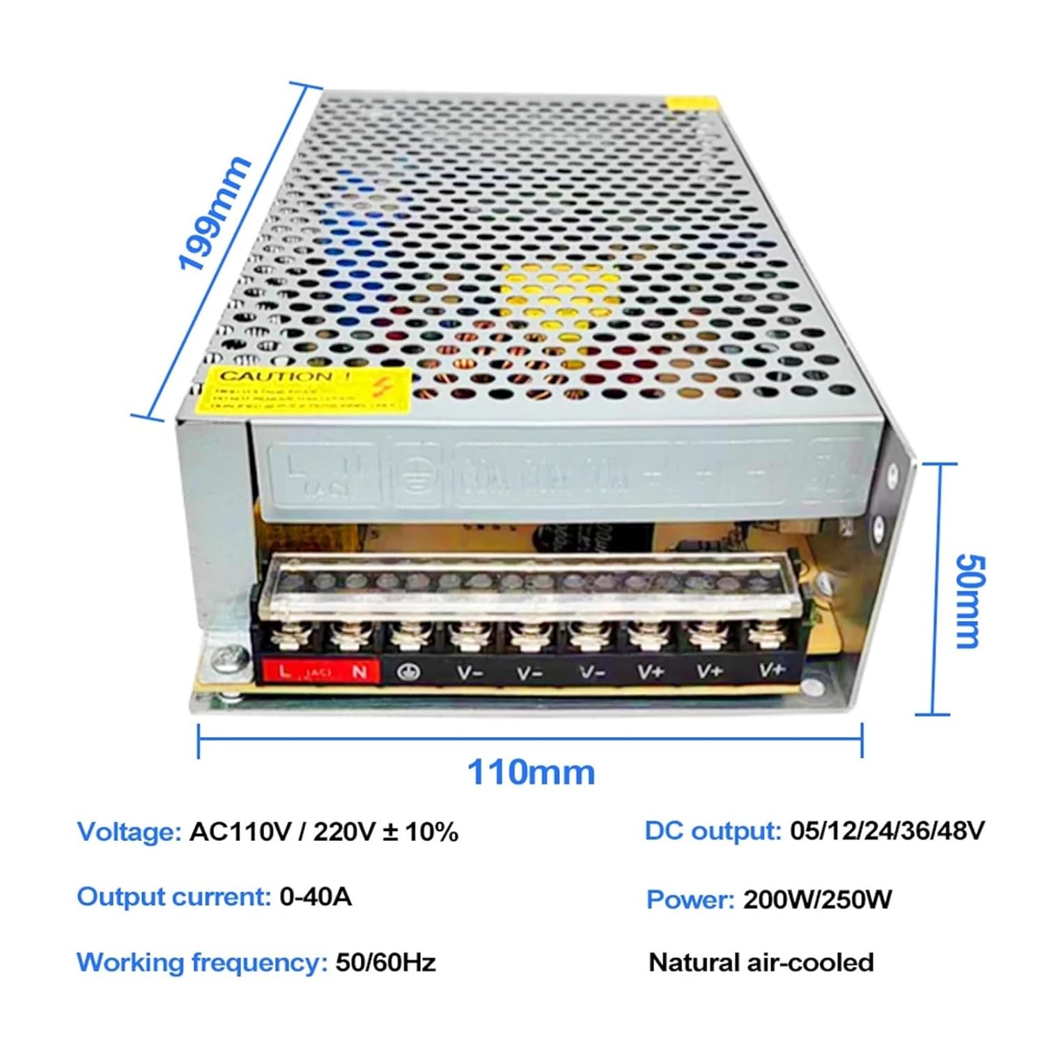 switch power supplyOutput Power : 201 - 300Wis_customized : YesOutput Current : 0-40AModel Number : S-200/250-5 12 24 36 48Output Frequency : 47-63HzOutput Type : SINGLE