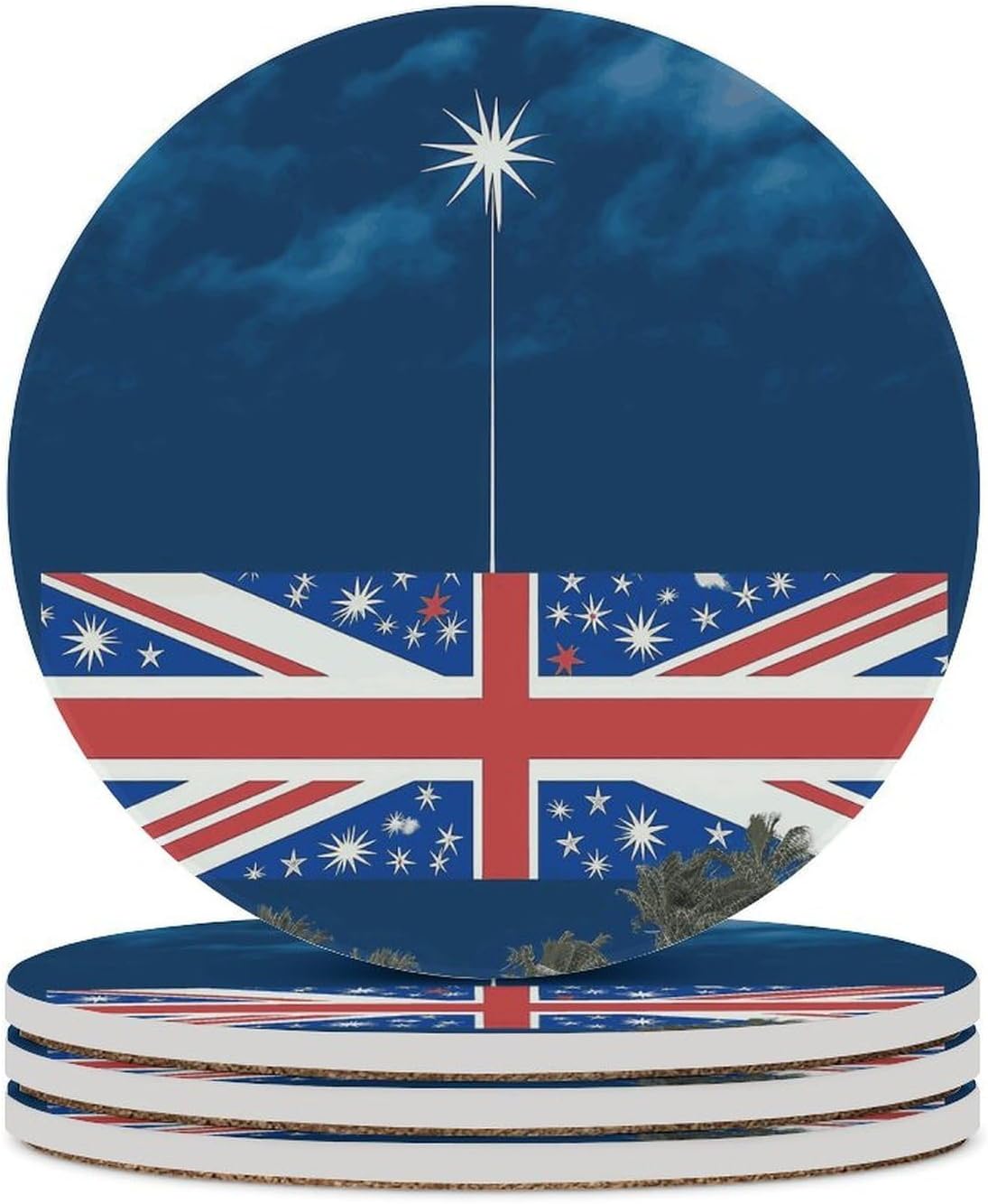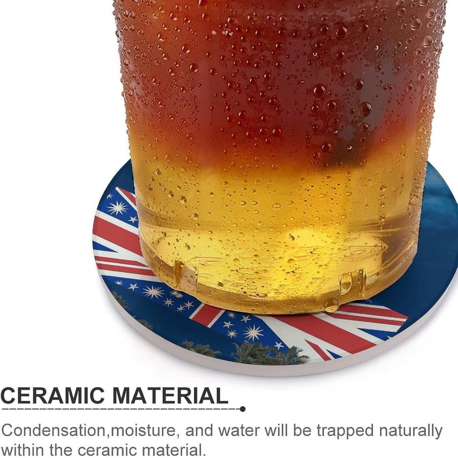 New Zealand Flag Coasters Round Coasters Set Ceramic Stone Coaster with Cork Base Coffee Cup Beverage Cup Mat Cute Funny Table Drinks Coaster for Mugs and Cups Office Kitchen