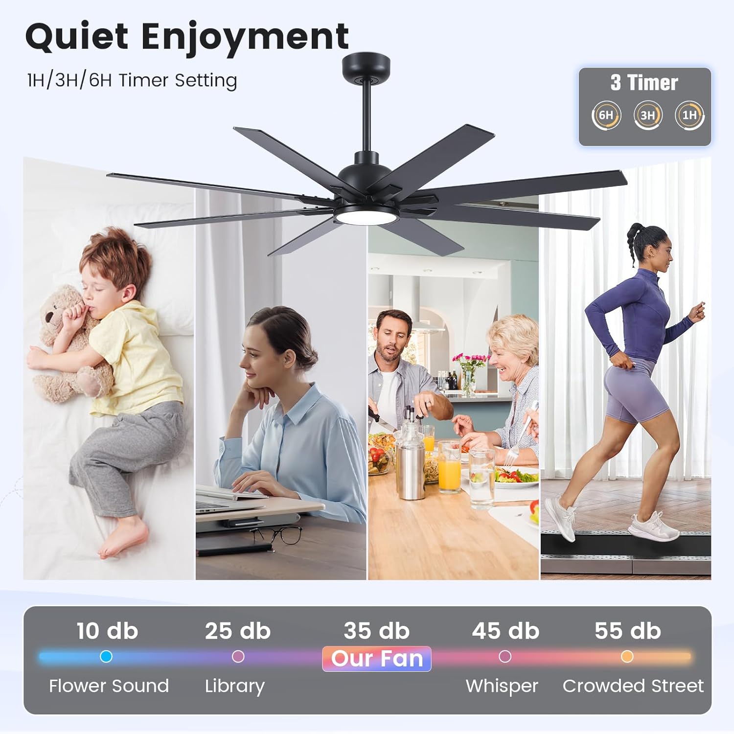 | Other Special Features of the Product | 24W 3-CCT LED with Memory Function, 3 Downrods Included (6"/12"/24"), 8 Reversible Dual-Color Blades, 8500 CFM Ultra-High Airflow, Silent DC Motor & 6-Speed Remote |
