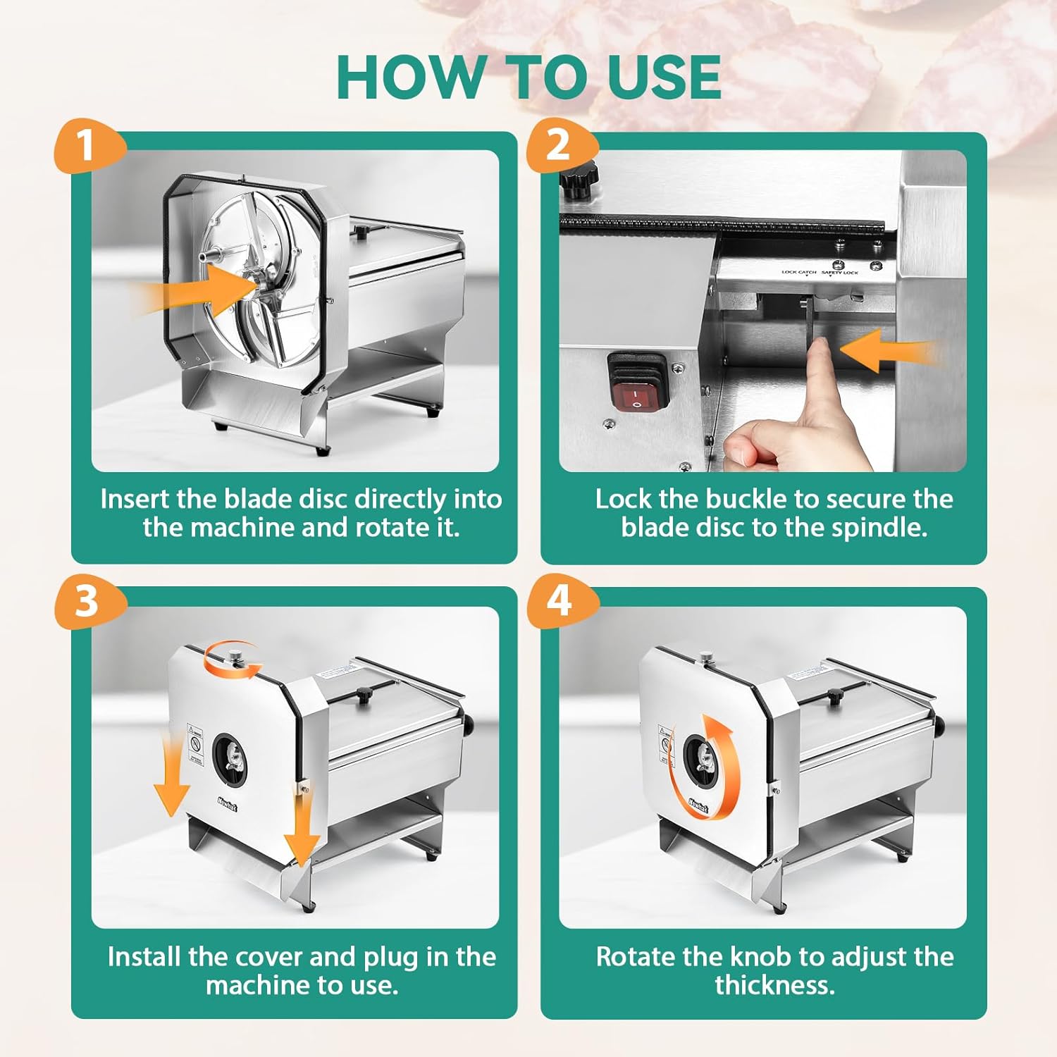 | Additional Features | 0-10mm thickness adjustable/stainless steel/designed for deli food&vegetable&fruit/labor saving level design/electric&manual dual use mode/removable blade/easy to clean&maintain |