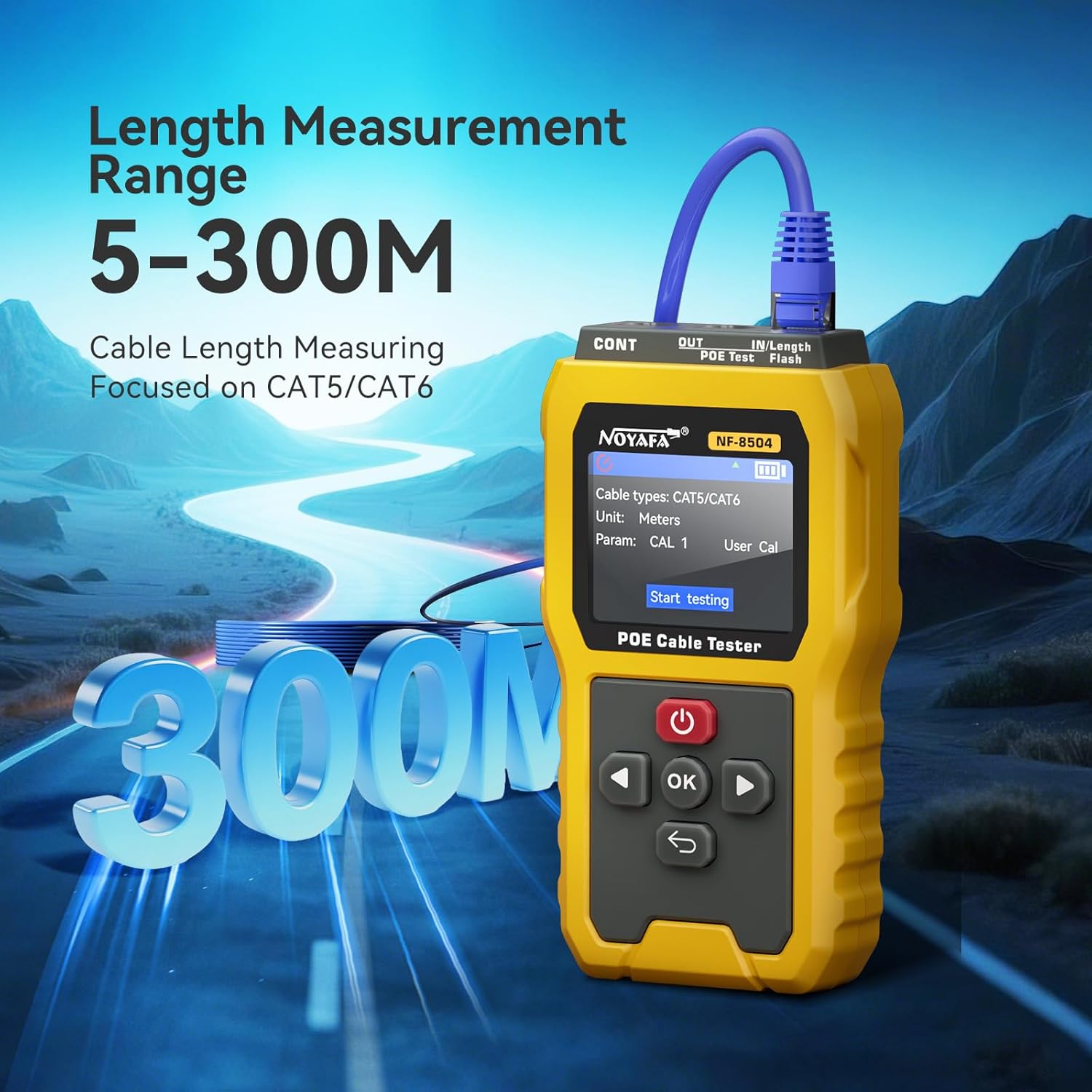 NF-8504 PoE Cable Tester – Continuity, Length, Port Flash & PoE Diagnostics, 2.4″ Full-Color LCD Display Network Cable Tester Rapid Response Reliable Result